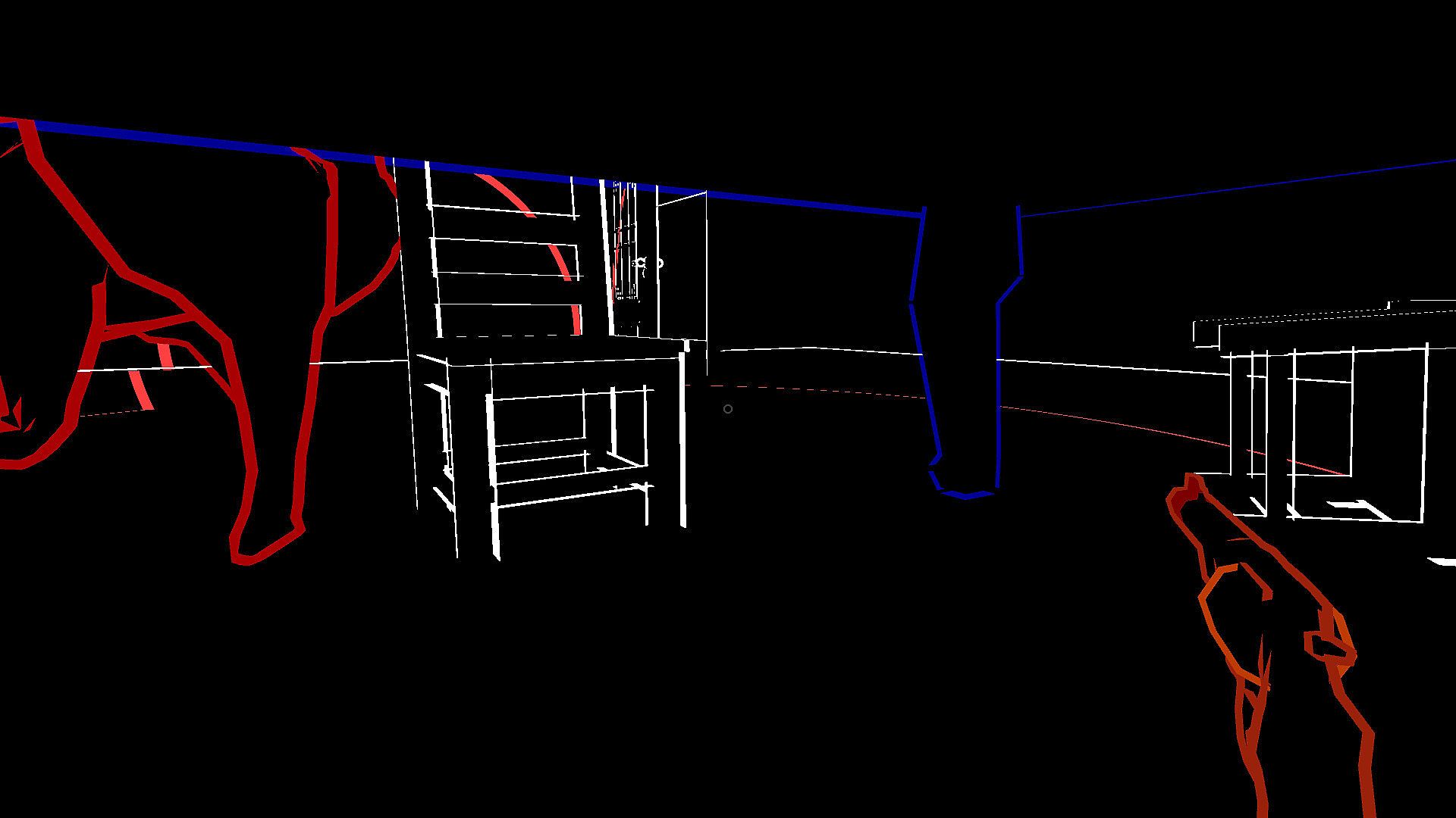 Without sight, you move forward in complete vulnerability, so you must make sounds (gunshots, footsteps, throwing objects) or interact with your surroundings.
