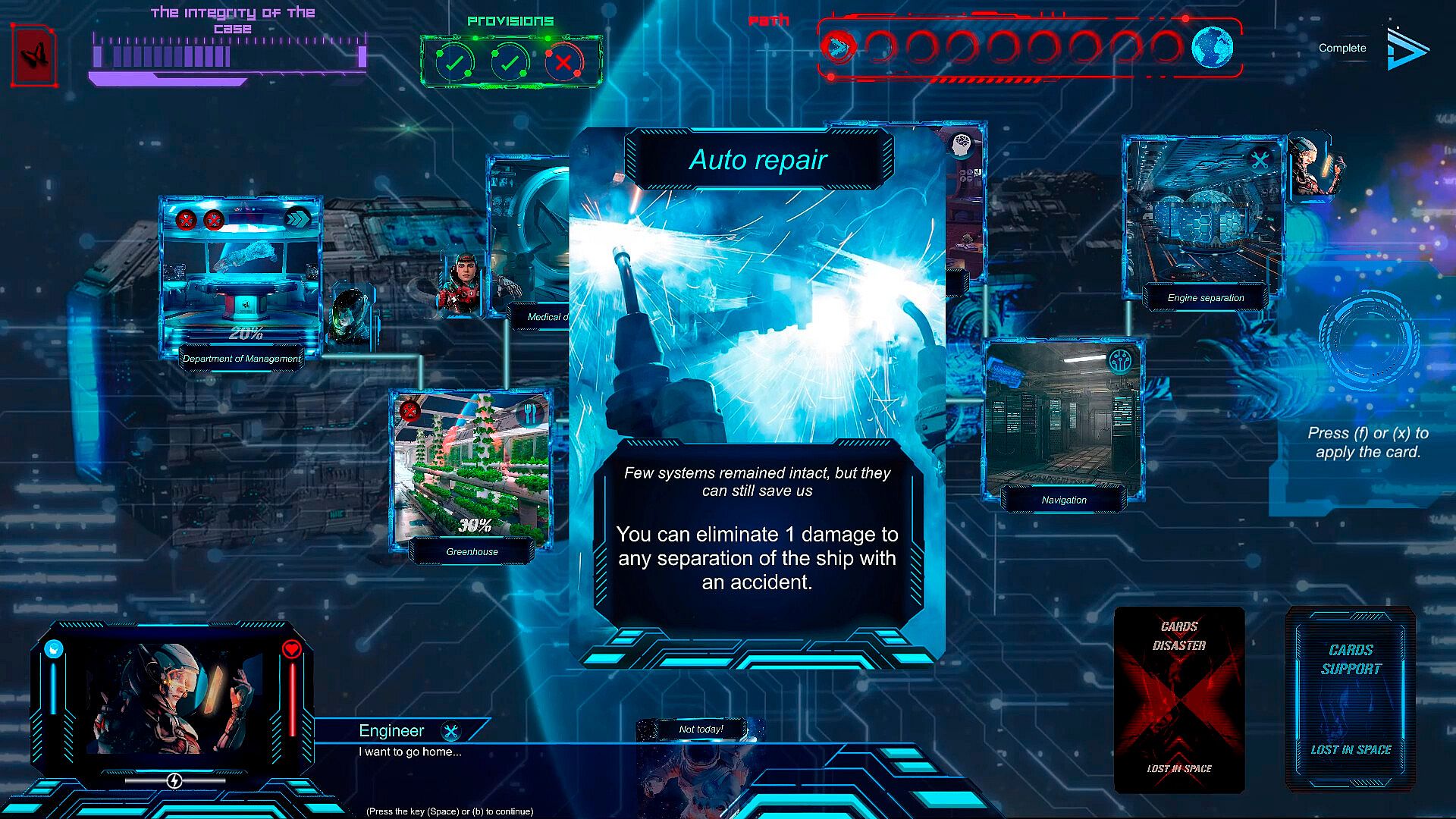 Each hero gradually goes crazy, the lower the mind parameter, the more the hero sees events beyond the control of reason, and the more accidents on the ship, the greater the chance of succumbing to madness and even harming his friends