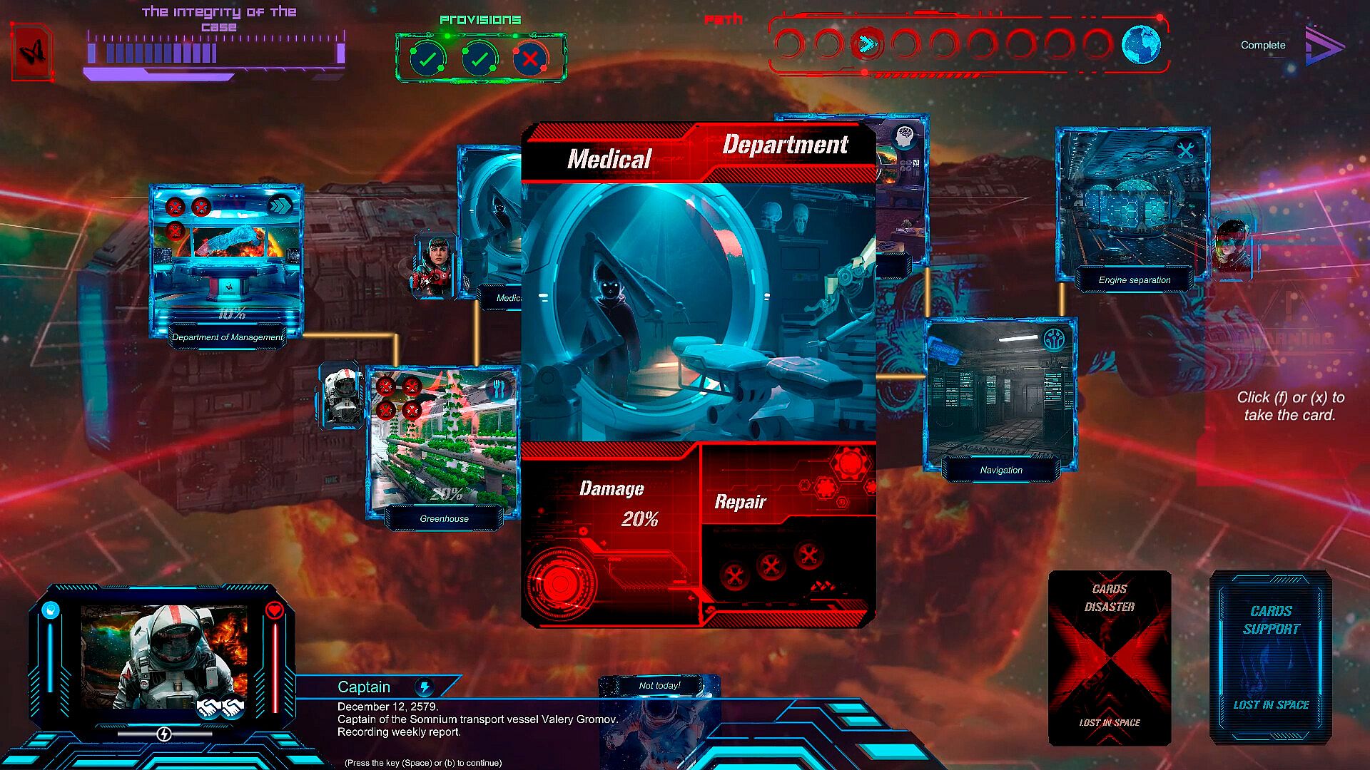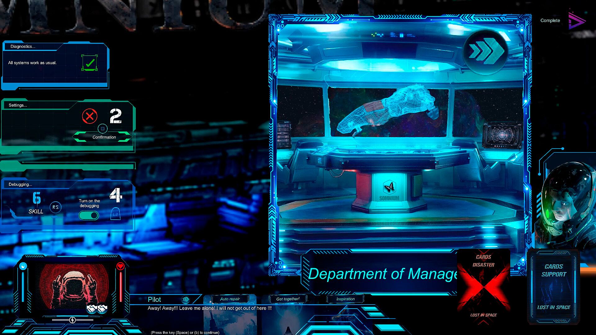 You have to manage a team of crew members of the intersystem cargo ship "SOMNIUM", each hero has his own character, characteristics, skills and fears