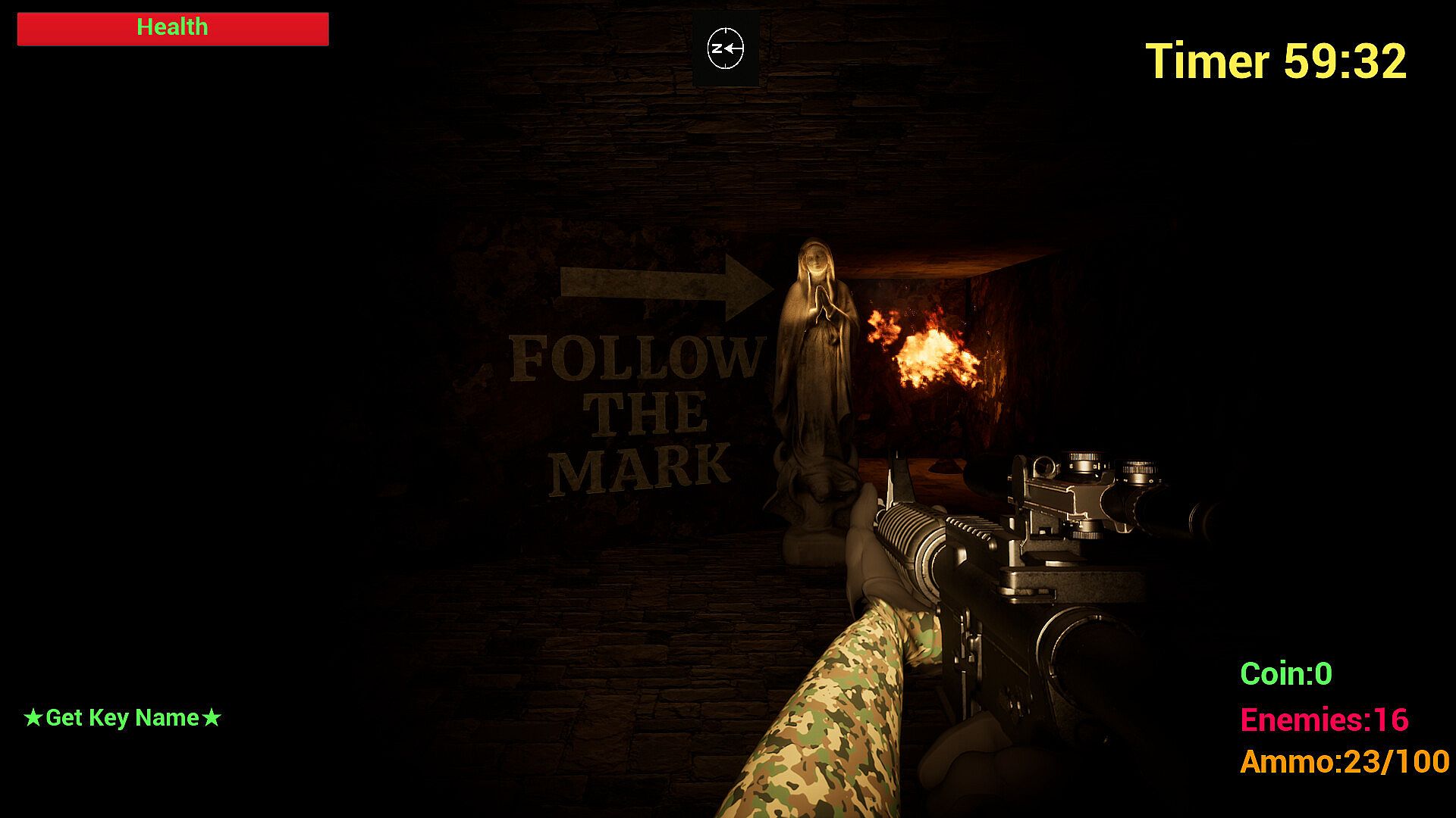Explore a massive labyrinth, evade threats, sometimes fight back, collect keys, and escape within 60 minutes.