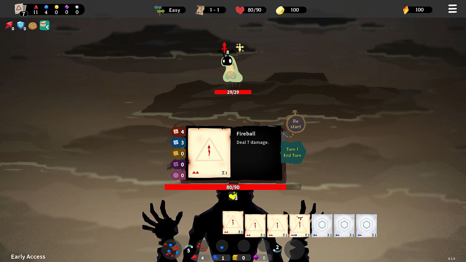 In Lost Pages, play with an entirely new and unique original deckbuilding system. The elemental deckbuilding system we've devised doesn't involve random card draws but instead requires a random draw of resources (elements of fire, water, earth, air) to use spells. This novel approach was recognized for its originality at the Google Indie Game Festival, offering a completely new deckbuilding experience.