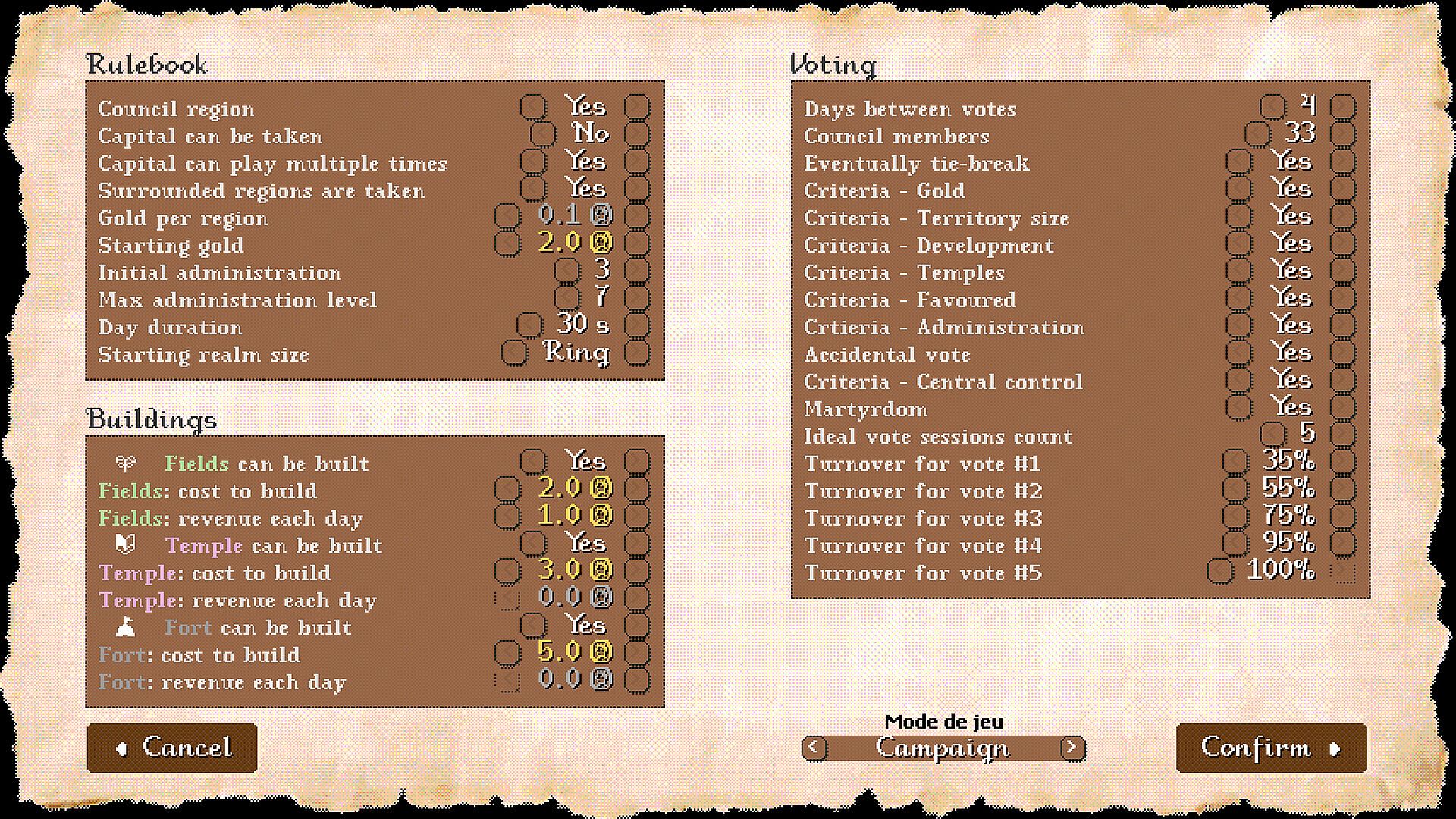 Conquer the lands of Warrica, battle with your neighbors, ramp up your defense and set up a robust economy. Upgrade your realm and don't forget to build a handful of temples, for the Council is quite fond of them.