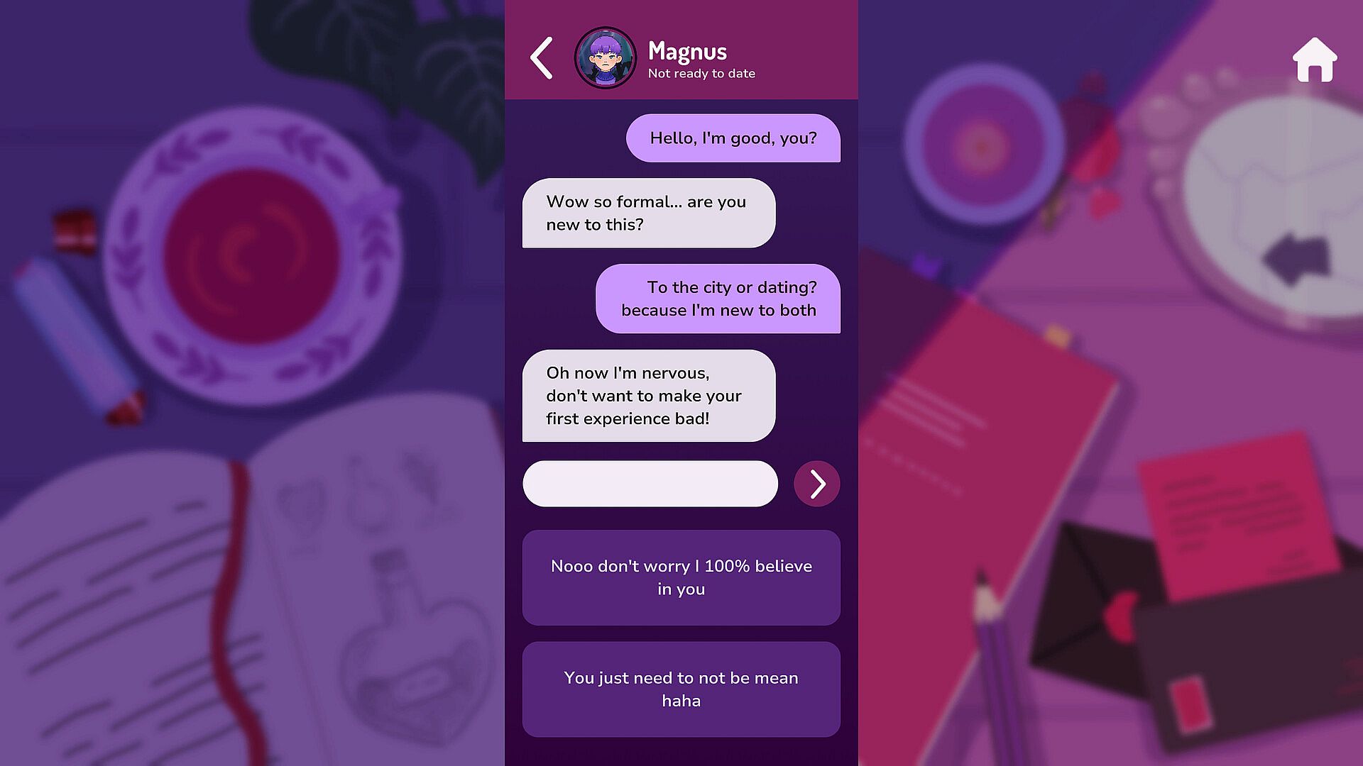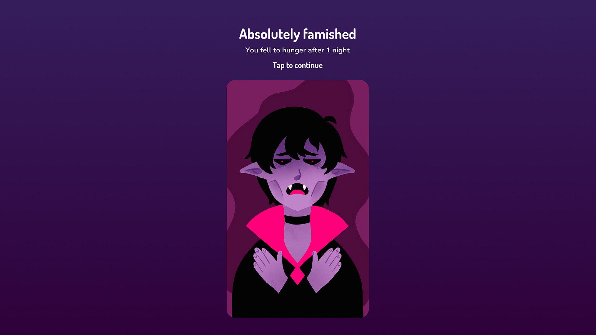 Immerse yourself in a dating sim with a focus on narrative and investigation. Where you are living the life of a vampire surviving through online dating. Swipe wisely, match with humans, and carefully navigate a dating app to secure dinner. Avoid fellow vampires, manage limited daily matches, and control your growing thirst.
