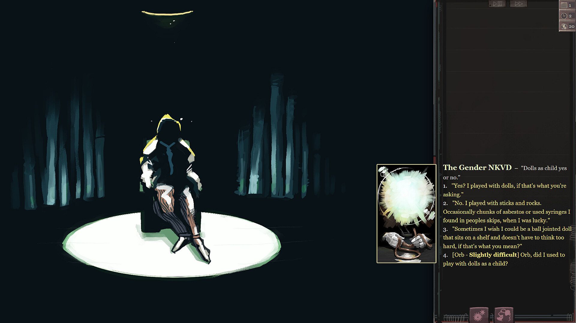 Lovely Lady RPG is a game about wandering around and just sort of seeing what happens. After waking up with a hole in her ceiling, a cosmic space Orb embedded in her chest and no recollection of basically anything, Ghost sets out to continue her life as best she can.