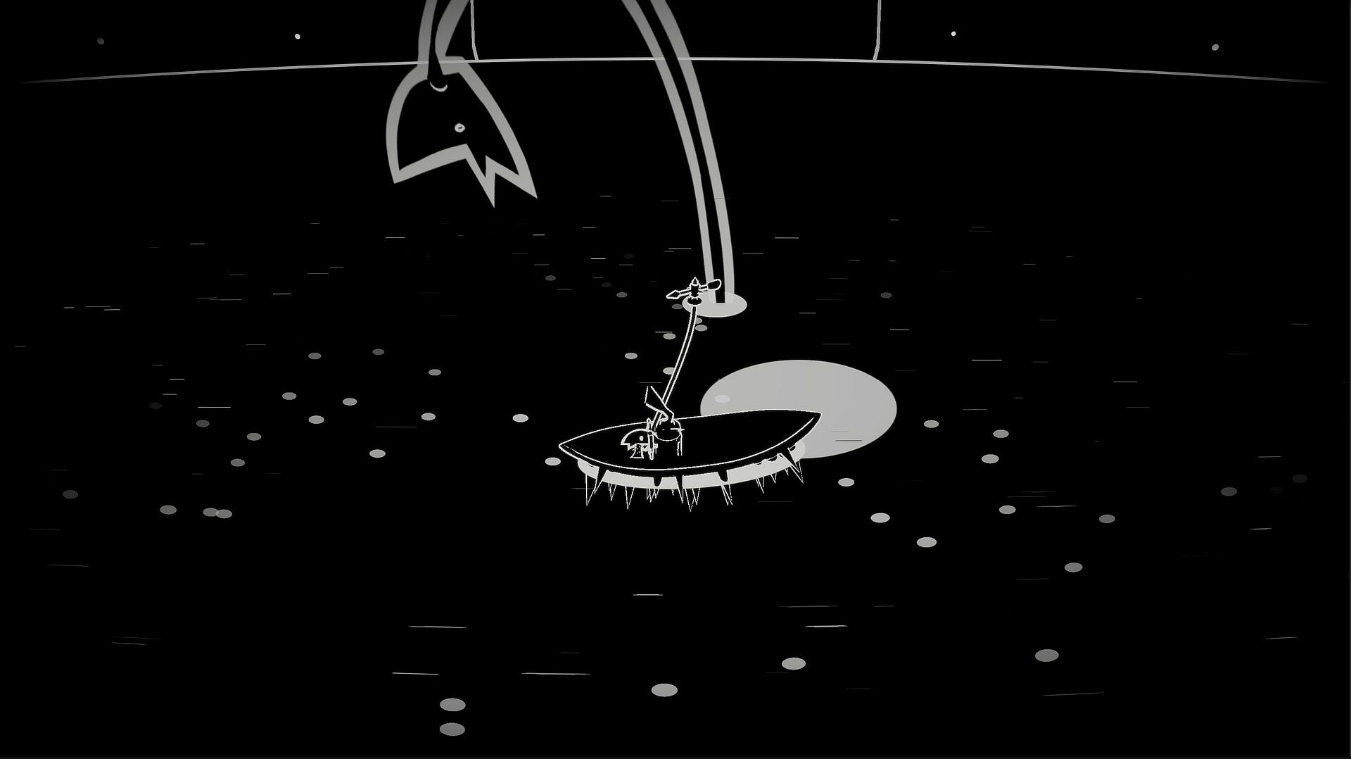 You’re a washed-up soul, a drifter who spends every night drowning your regrets at the bar. Your life is a blur of empty bottles, until sleep takes you into a strange, dreamlike world. In these dreams, you find yourself fishing on a stark, monochrome lake, where ancient, monstrous fish lurk beneath the surface. Each night, you reel in these nightmarish creatures from the depths, only to be harshly pulled from your slumber by the bartender, reminding you it’s time for another dose.