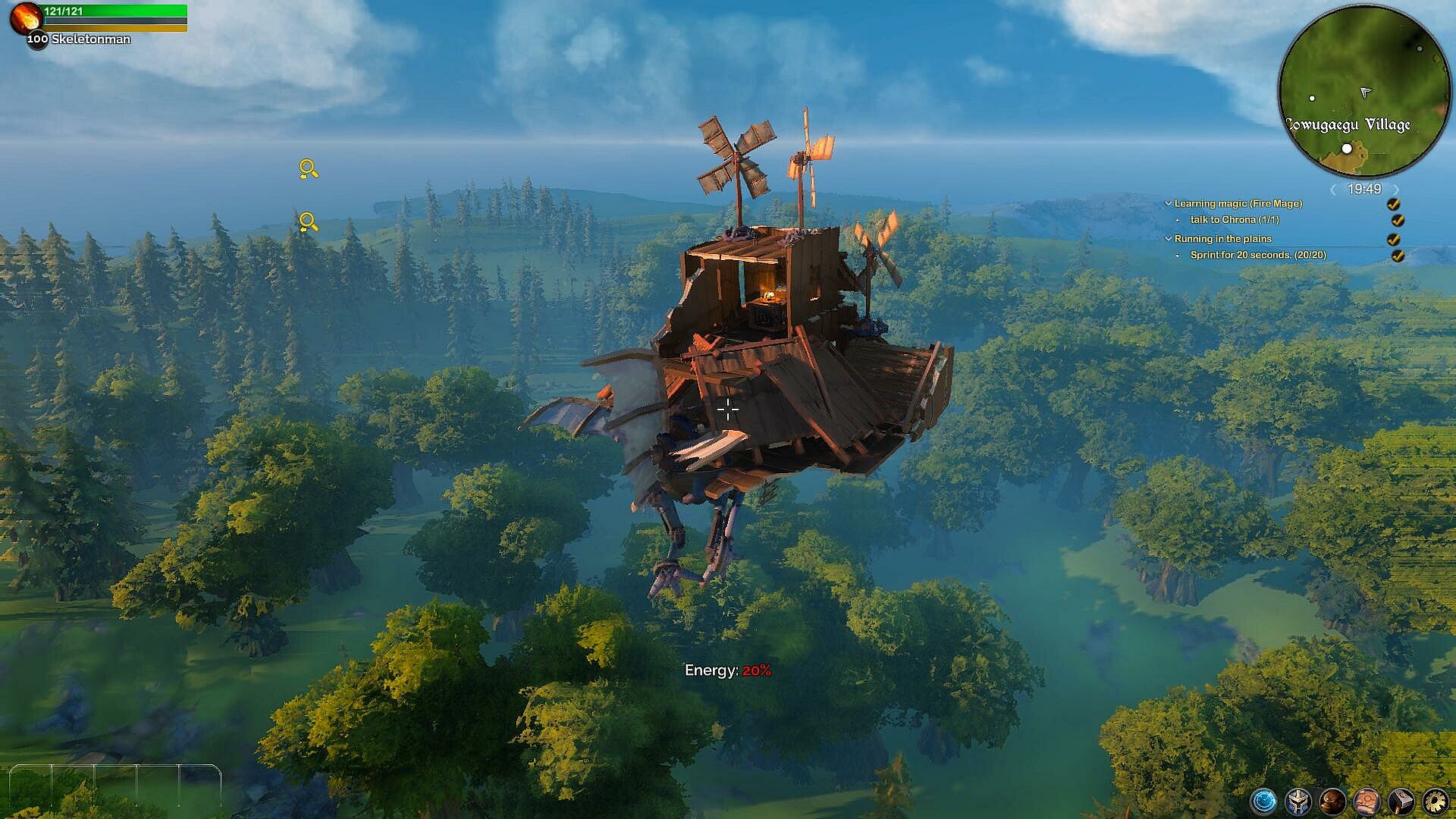 You may not be able to face these titans head-on, but you can gather materials to construct a walking fortress with cannons!