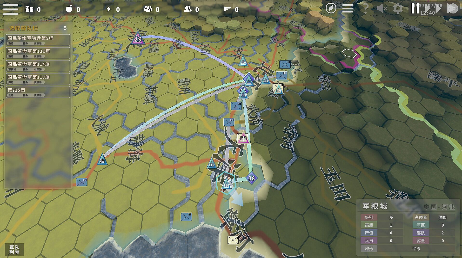 • Battle:The map has subdivisions to simulate the local terrain, and the army will conduct tactical battles on the subdivisions;