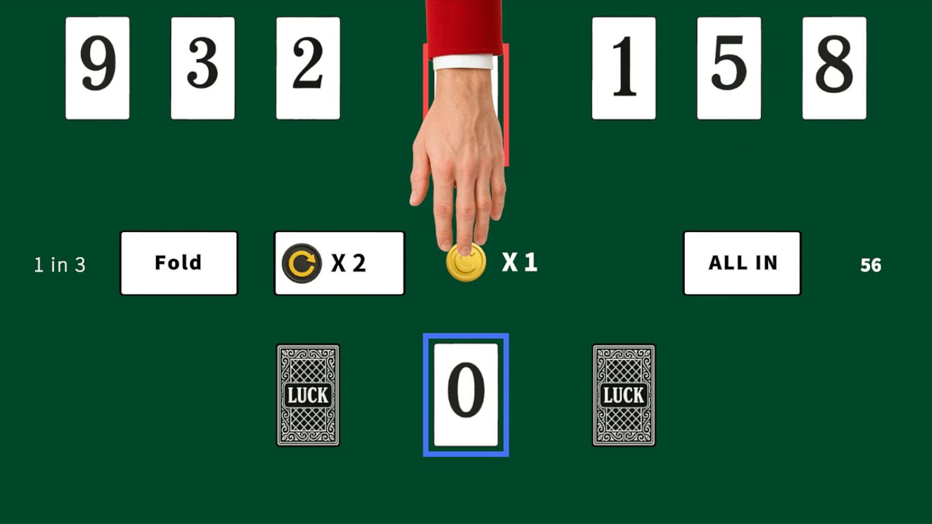 In every round, you wager everything you have. If you're unsure, you can redraw your hand or step back and give up.