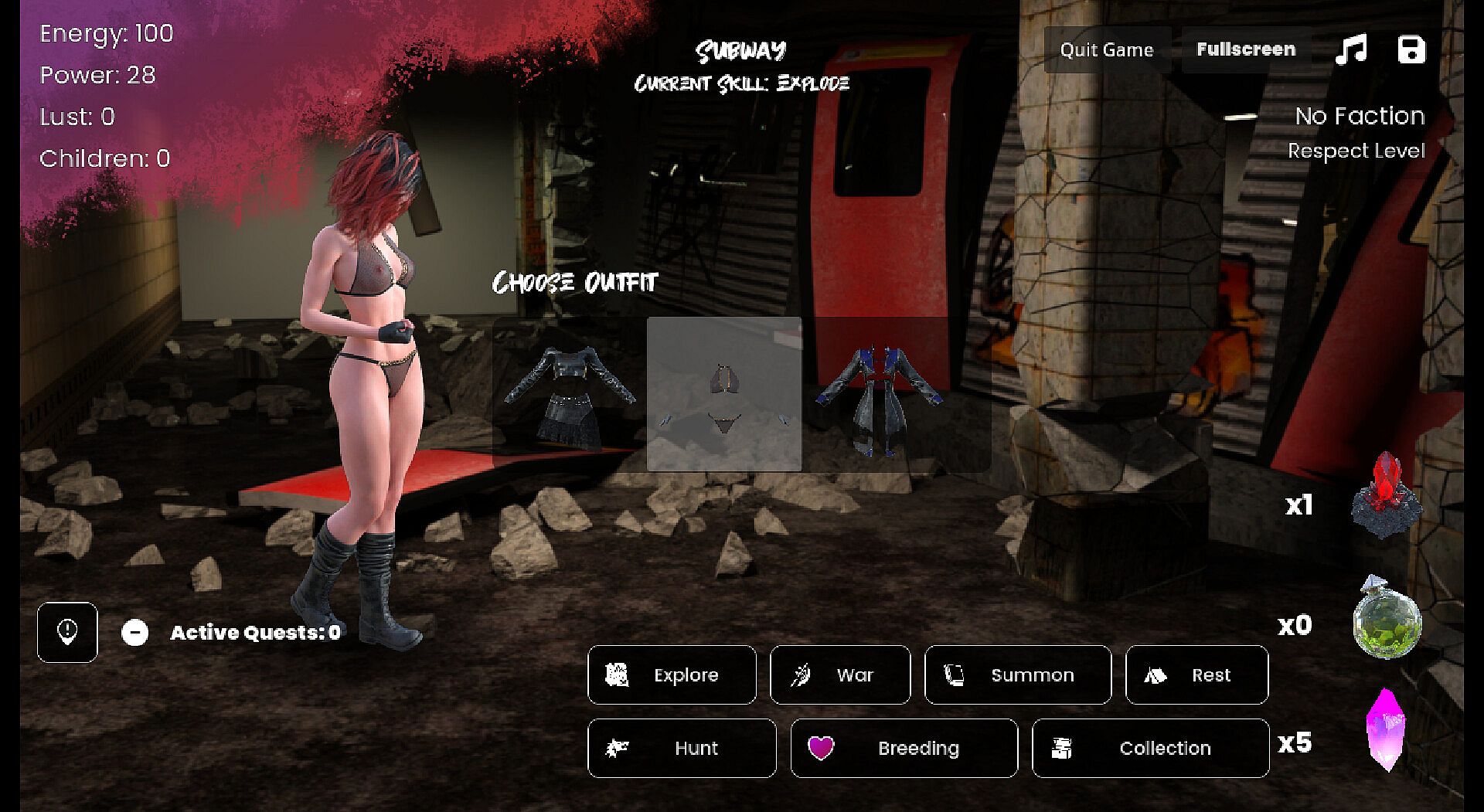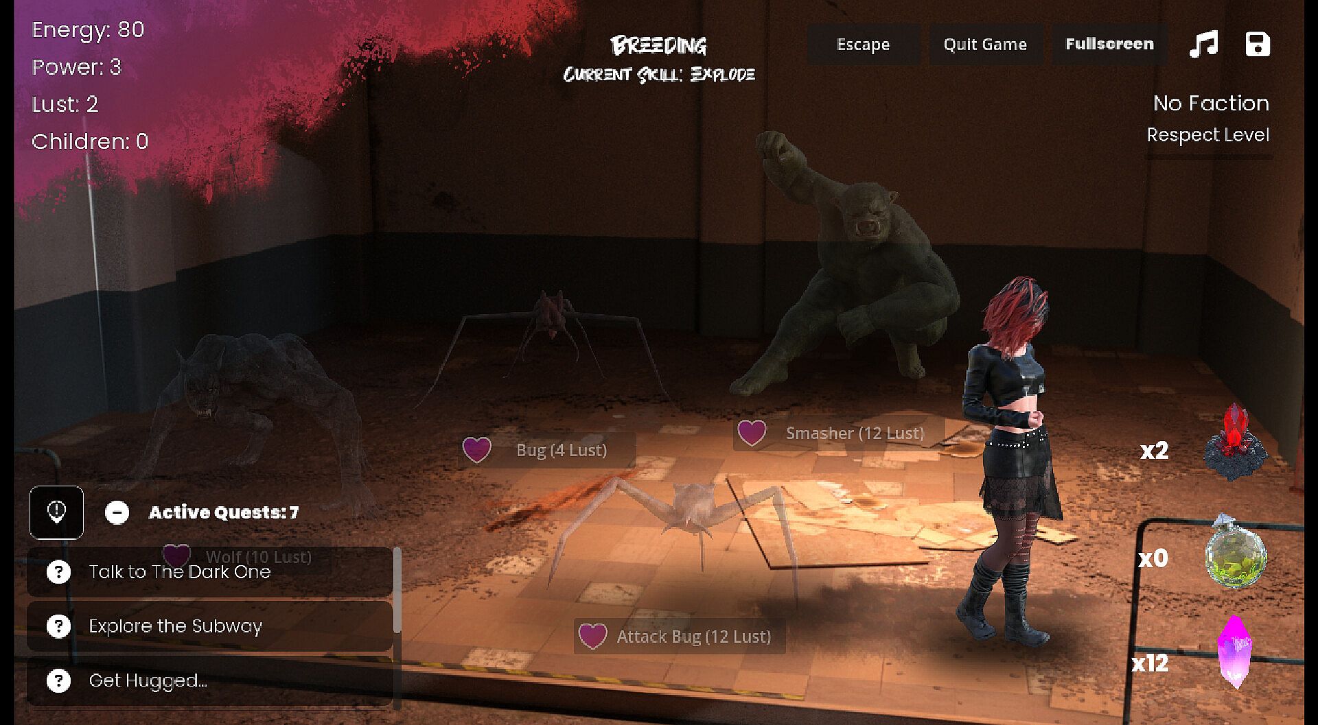 In this current build, you can explore the subway in 'Explore Mode'. Collect Crystals and Fight Wolves, even join the Orge Faction!