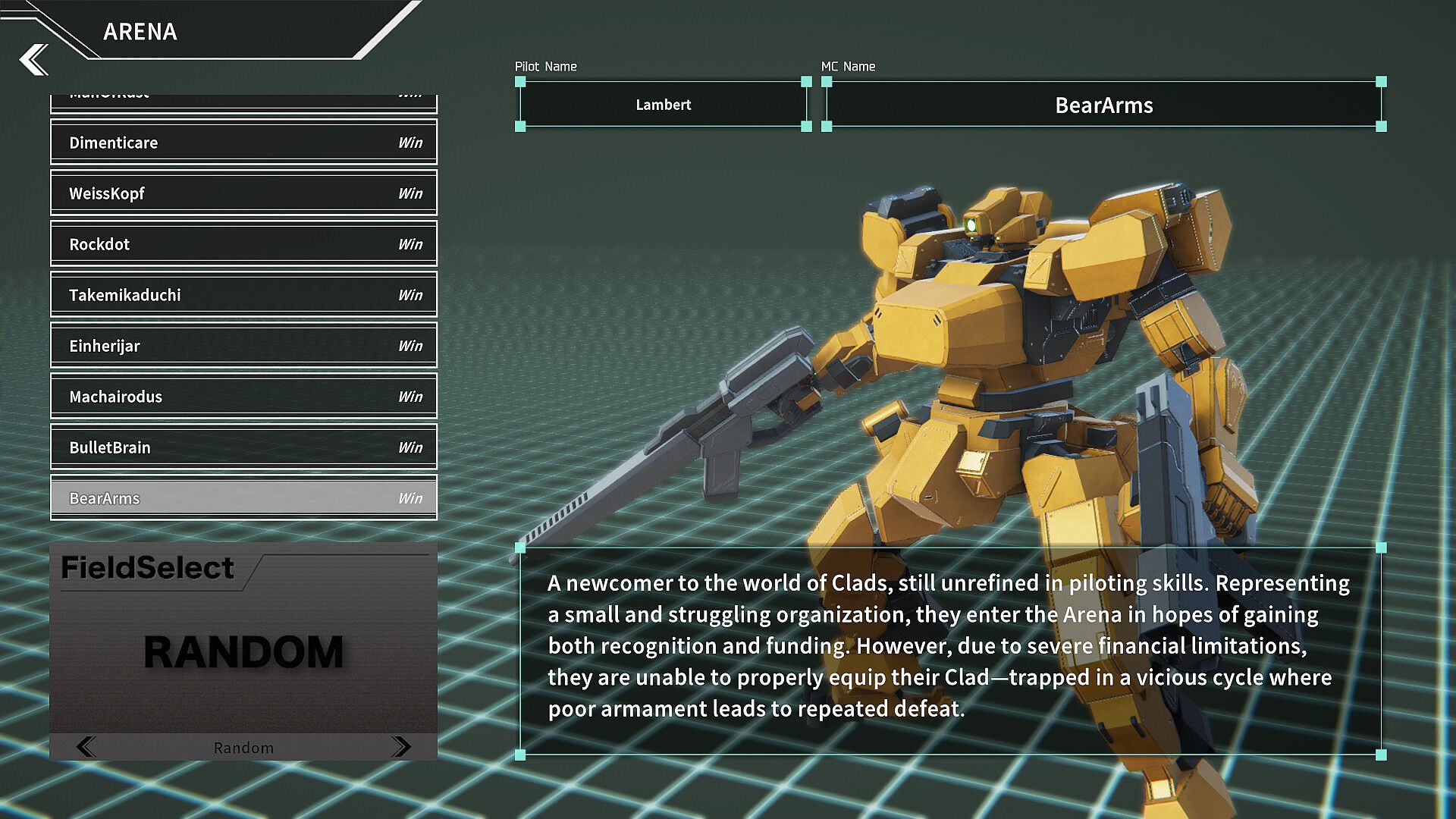 A dedicated mode for battling other mercenaries—known as "Clads"—who pilot their own MachineClads. Each opponent in the Arena showcases unique tactics, making them ideal challengers to test your skills. Their distinctive bios also offer glimpses into the world and its lore.