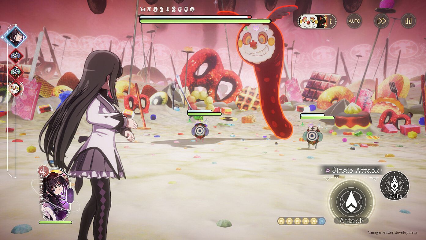 Optimize your Magical Girls' battle strengths through their roles and elemental affinities to take on powerful Witches lurking in Labyrinth lairs.