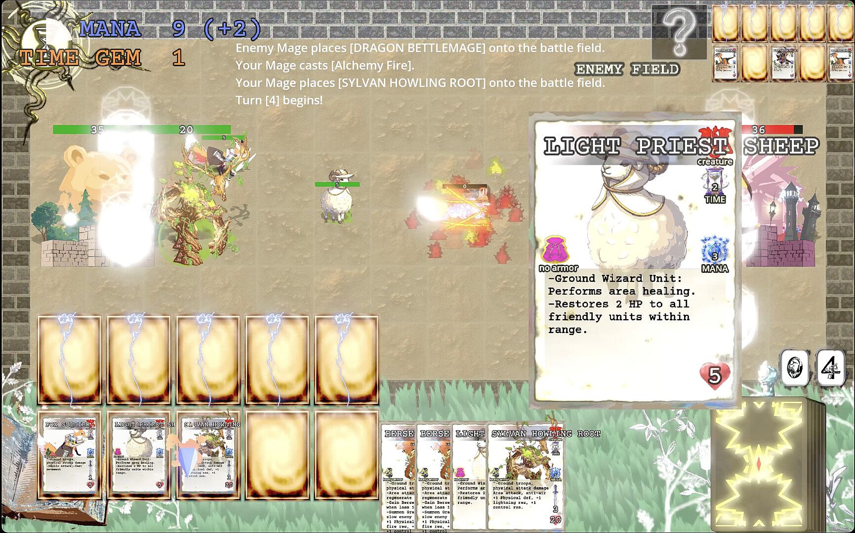 Defend against impossible enemy attacks, summon foxes, sheep, bears, dragons, ninjas, skeletons, goblins, and the Nine Egyptian Gods, and cast mighty lightning, meteors, and icebergs to turn the tide of battle.