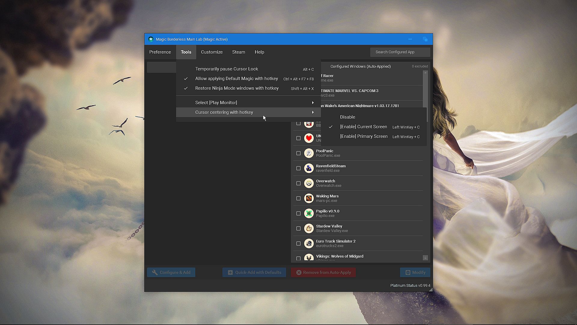 There are different ways to make a window borderless, but all of them often has trouble resizing window properly or suffer from graphical errors. Magic Borderless has improved code to combat these issues for you and will work on even more games! It has the highest compatibility list of all borderless software available!Customizable Additional Magic