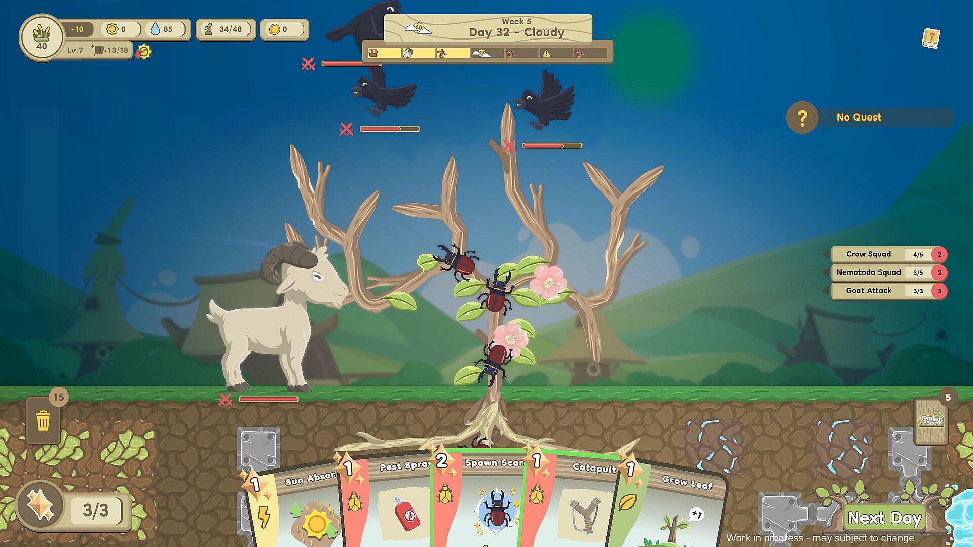 Welcome to Magica Planta Botanica, a deck-building strategy game where you can experience the excitement of growing your own seed into a fruit-bearing tree. Use a set of utility cards to grow, cut certain parts, or even manipulate your surroundings to your advantage. But be prepared for the unexpected – with changing weather and pesky pests, every day presents new challenges to overcome.