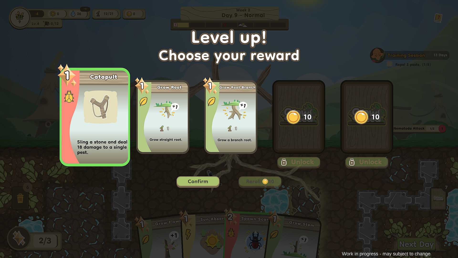 • Play as different seeds, each with their own unique plant shape and starter deck, and strive to reach specific goals.