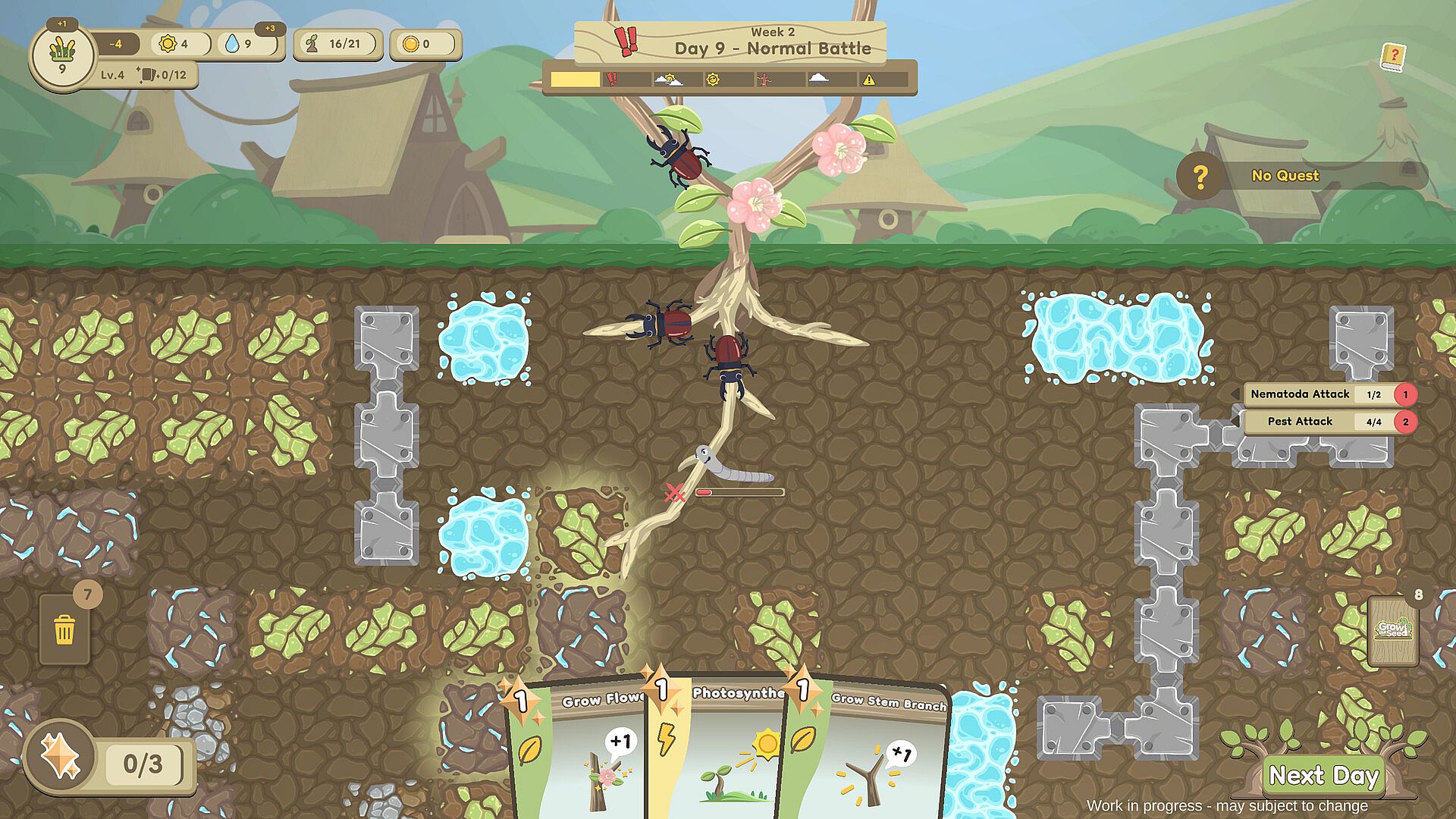 • Explore numerous cards to develop your plant, starting with a simple starter deck and unlocking more cards as you progress.