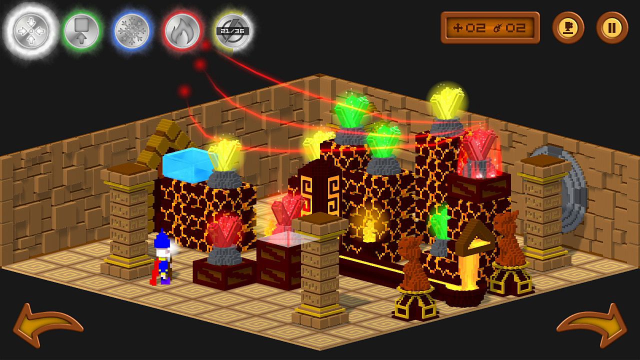This game uses the well-known theme of 3-piece alignment of the same color, but with a totally different mechanics. Using a 3D scenario (Voxel Art), it challenges the player to solve the puzzles in a unique way. By positioning the character in the right place and firing the acquired powers at the correct angle, the game allows the interaction with the scenario and the collection of the Energy of the Colored Crystals and thus advance to the next levels.
