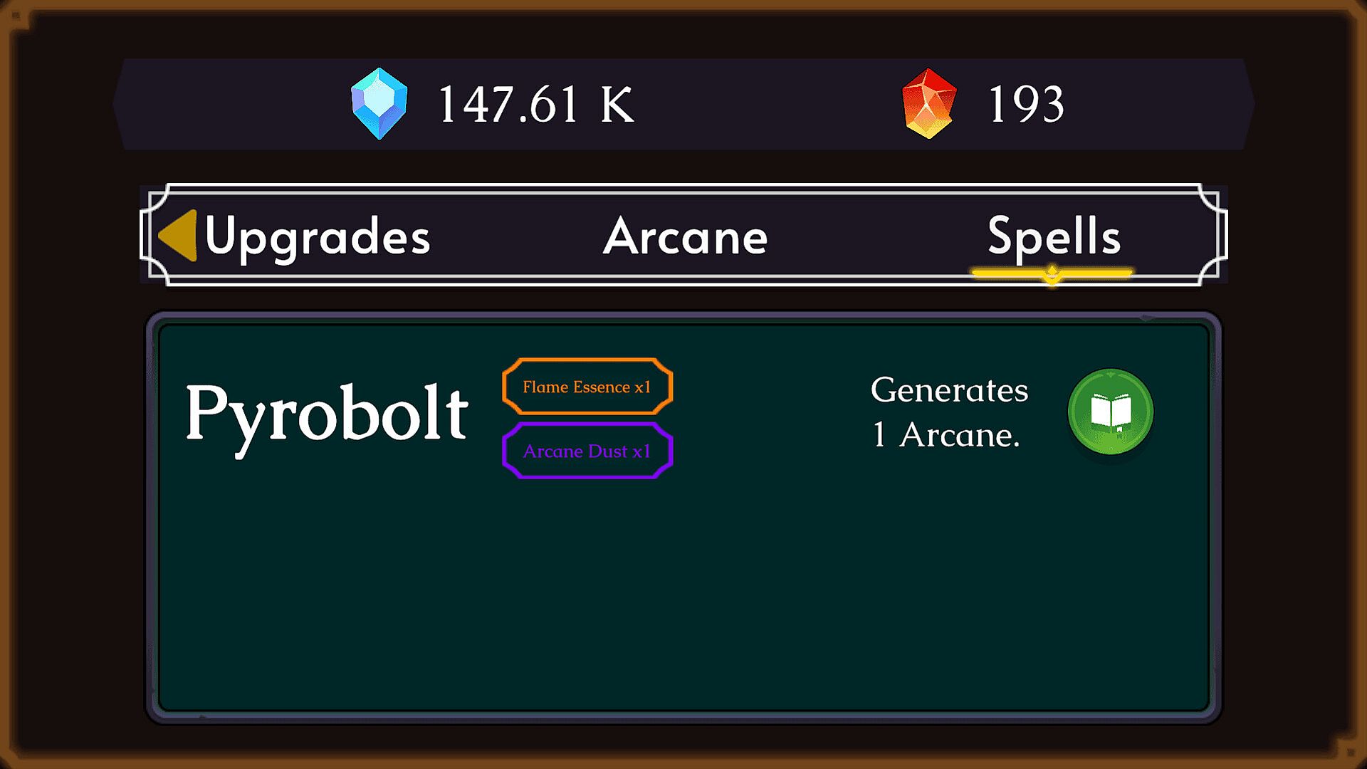 • Master Arcane Automation: Progress from simple manual spellcasting to designing vast, complex networks of mystical infrastructure. Unlock conduits, rune engines, and scroll presses to produce spells passively and grow your power exponentially.