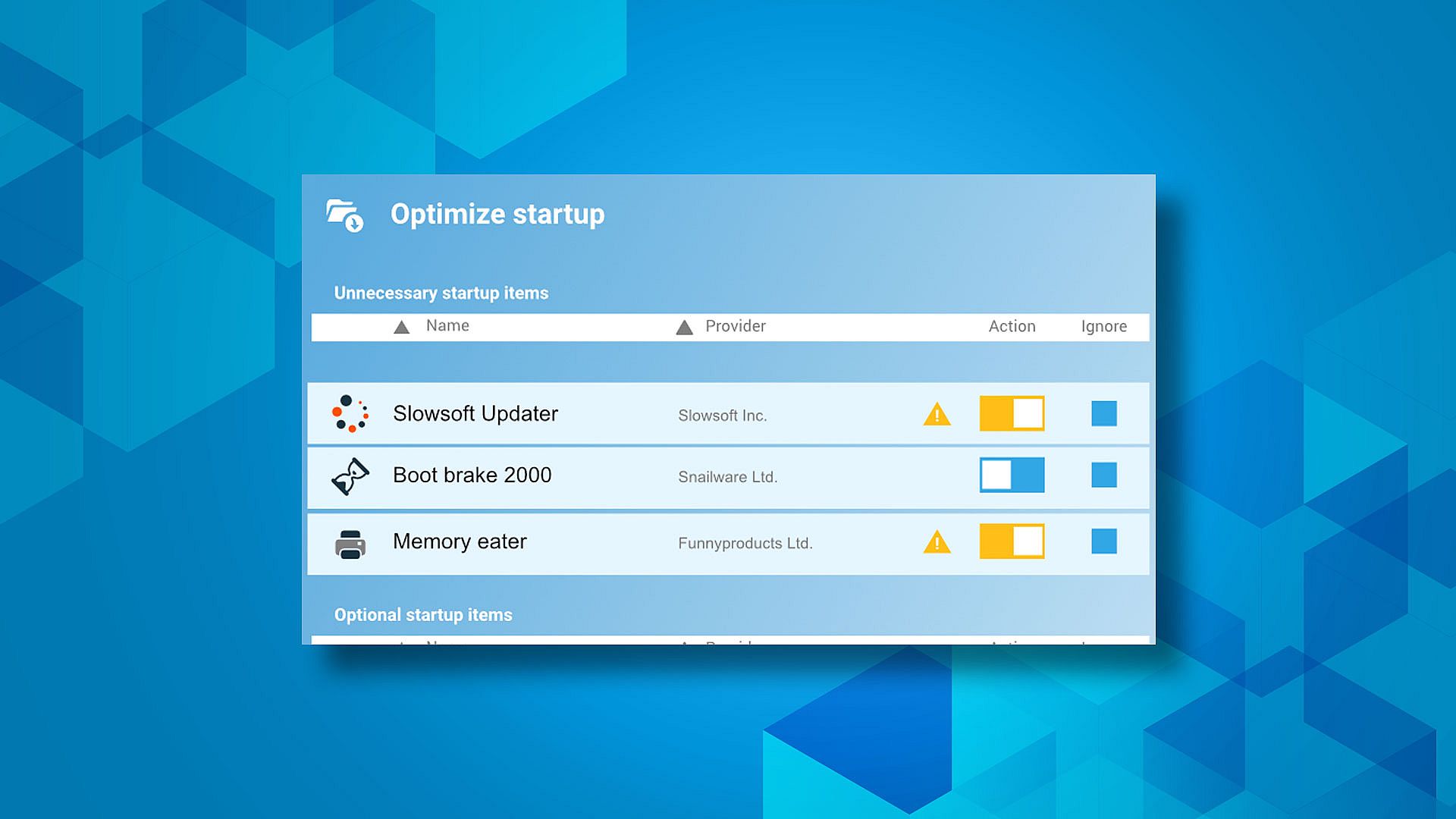 Tell you after each optimization how much disk space and RAM has been freed up, and your new, improved start time. The program will inform you when files are changed. You have full control and can undo changes if you want.