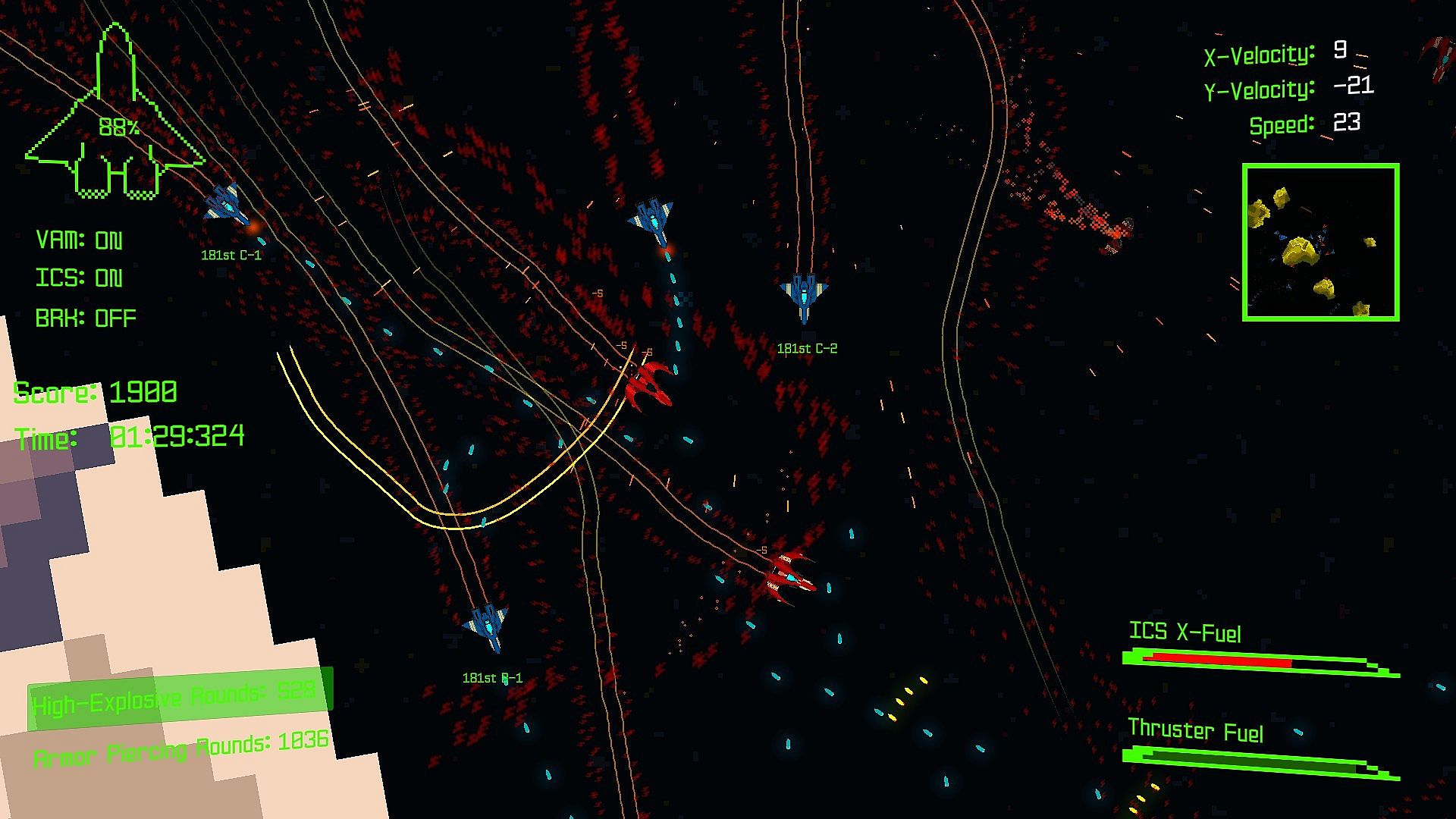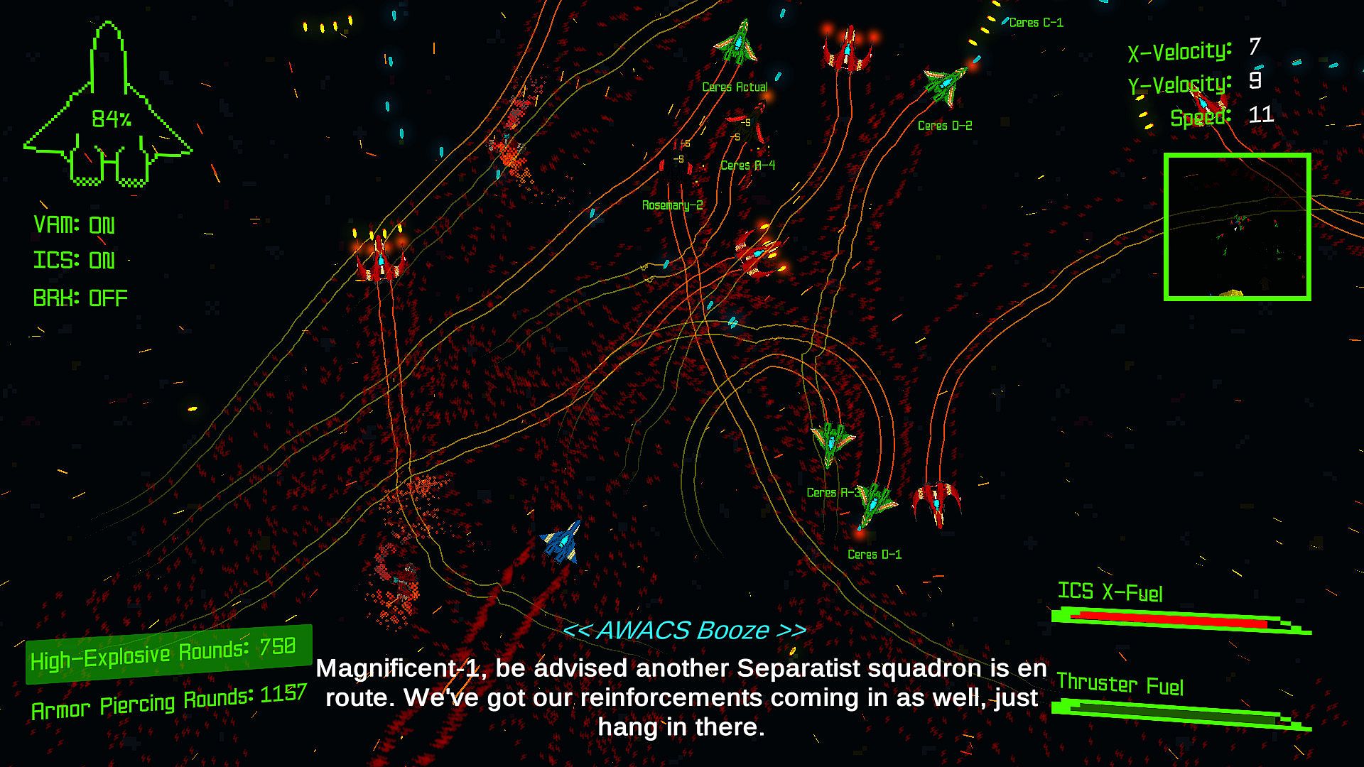 Pilot elite fighters in intense 2D top-down sci-fi space dogfights where semi-realistic physics drive every maneuver. Simple controls unlock advanced tactics like flying backward, while you re-arm and refuel amid combat to survive brutal encounters. Arcade missions let you command 10 different spacecraft across varied challenges. The story mode follows Magnificent-1 through 13 fully voiced missions in a military sci-fi universe torn by war between the Ardassian Republic and Separatist Alliance. Read emails, briefings, and lore to grasp your role in the galactic conflict. Pixel-art visuals enhance this indie action experience for pilots who master physics-based precision.
