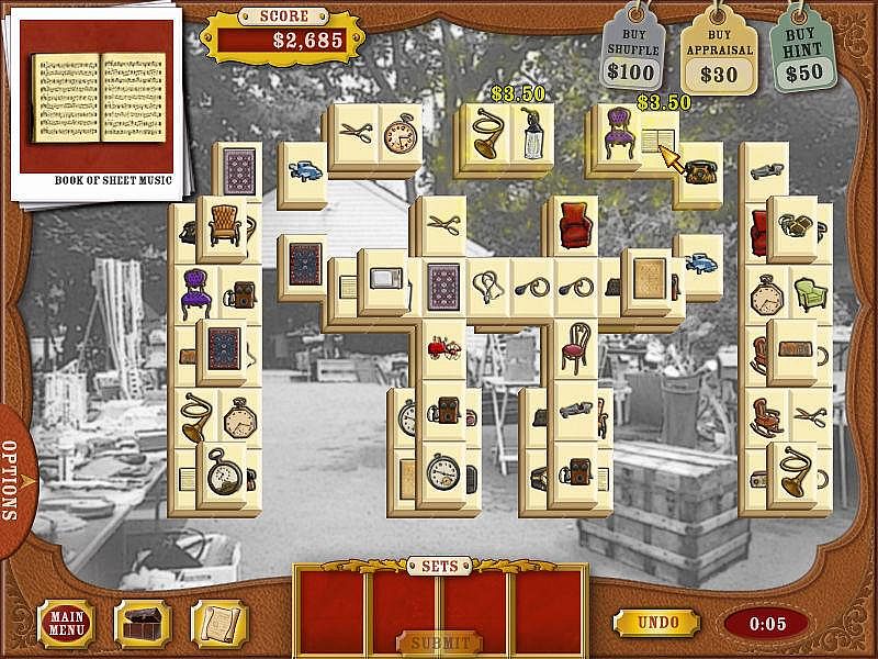 In Mahjong Roadshow, you’ll make your way from garage sales to the auction block in search of priceless treasures from antiquity! Leave no tile unturned as you sift through rooms full of everyday objects to find the most valuable objects on earth! Is it a 12th century original or a 20th century replica? Is it an invaluable artifact or a worthless trinket? Is it the genuine article or a clever counterfeit? The only way to find out is to play Mahjong Roadshow!