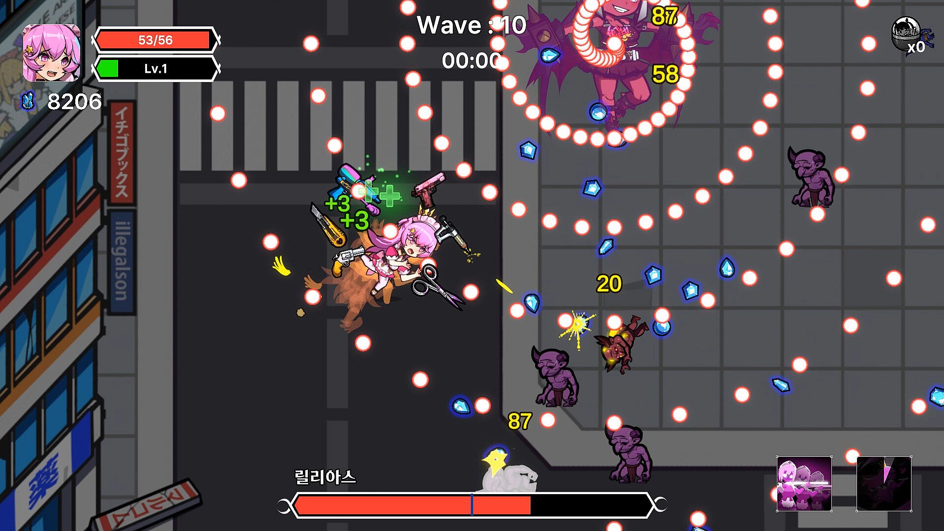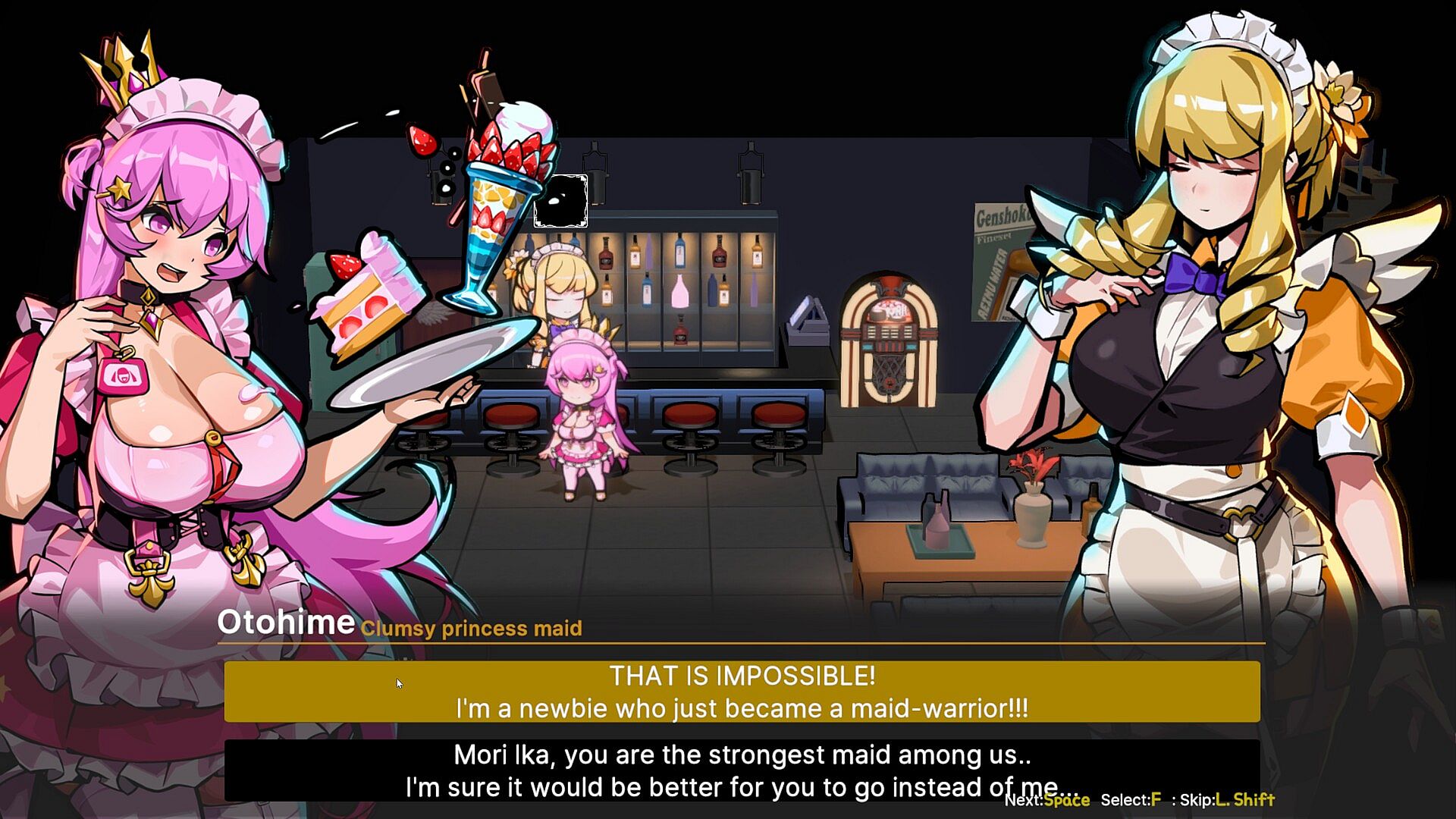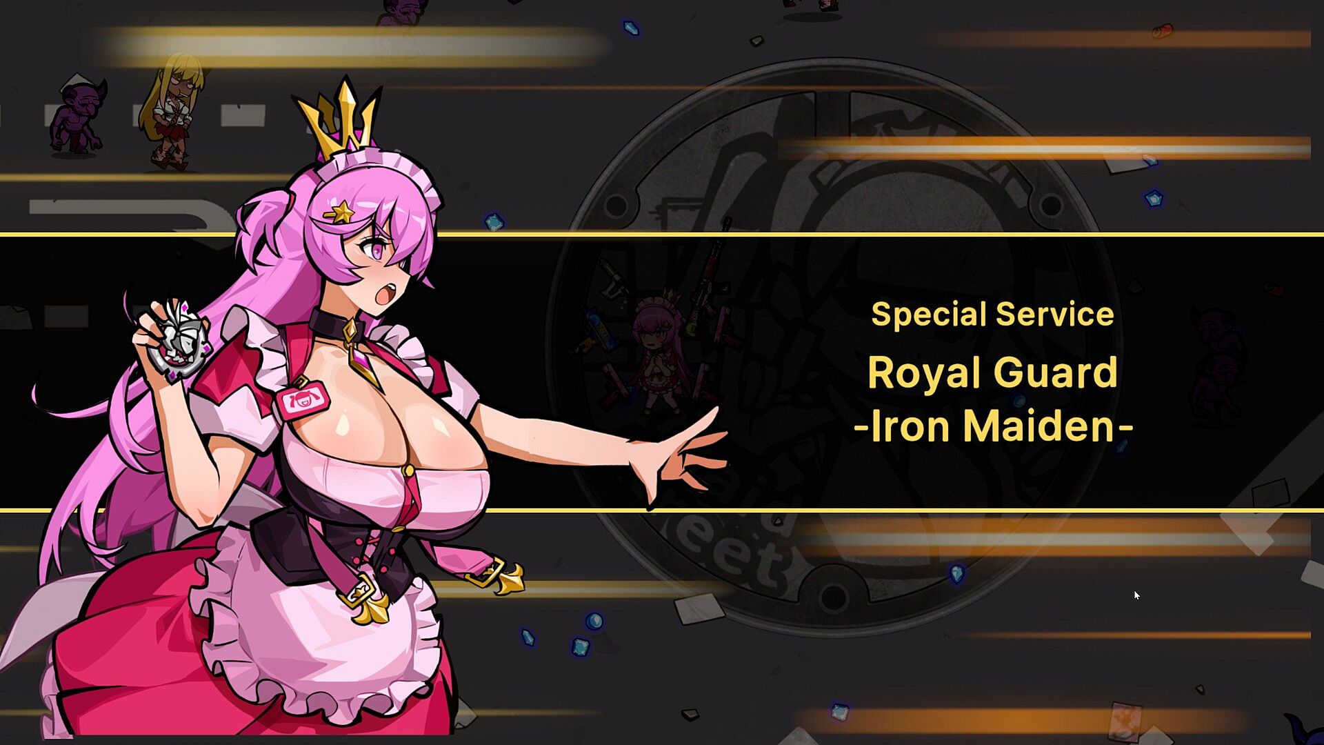 Maid-warriors must survive from waves of enemies and create your own builds by choosing from a variety of weapons and items to defeat the powerful boss at the end of the stage to save peace on Earth.