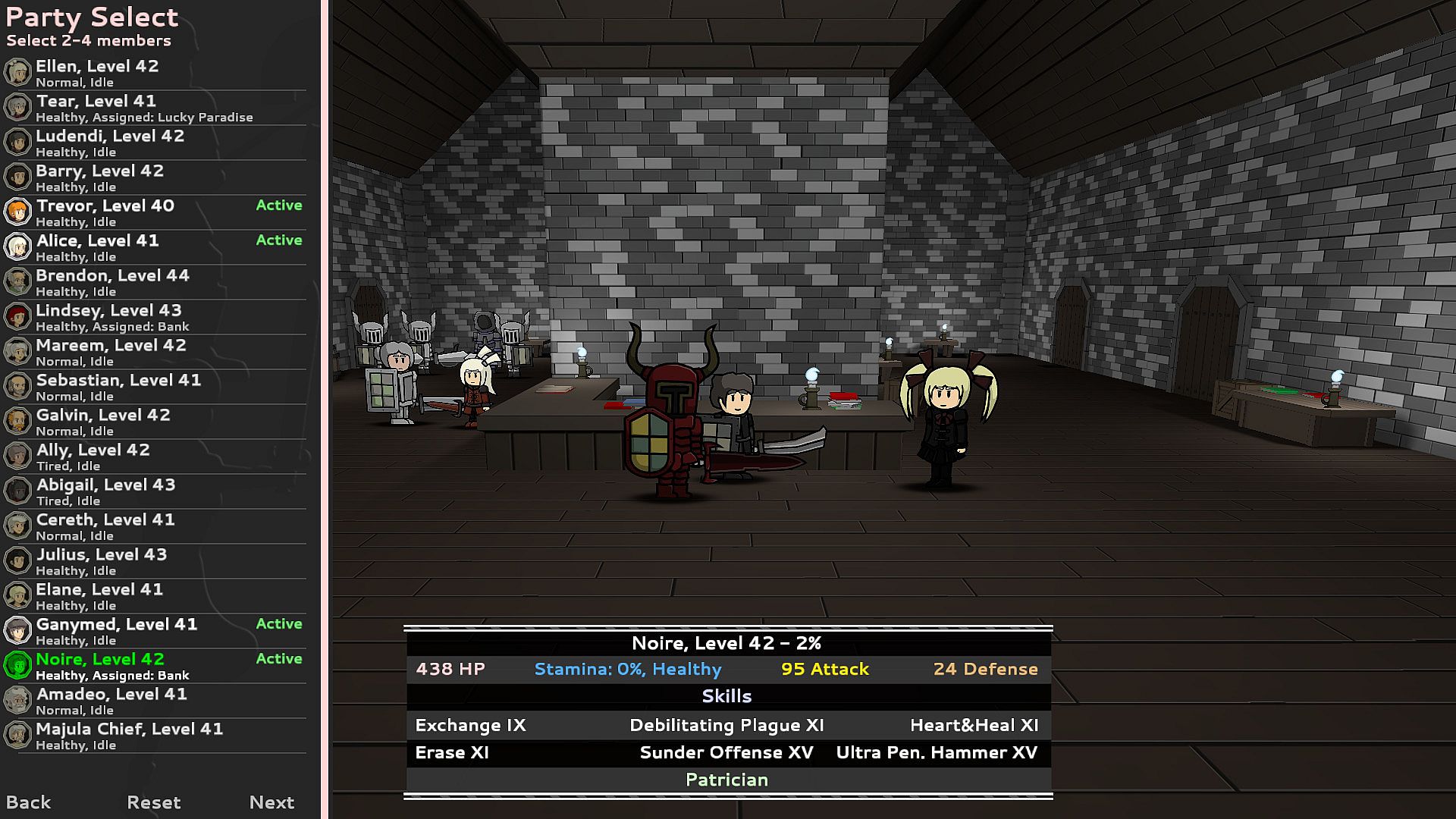 “Deaths” are punishing. If a character runs out of health, there’s a good chance they’ll quit the mission and return to town to rest, leaving you to continue on with one less party member.