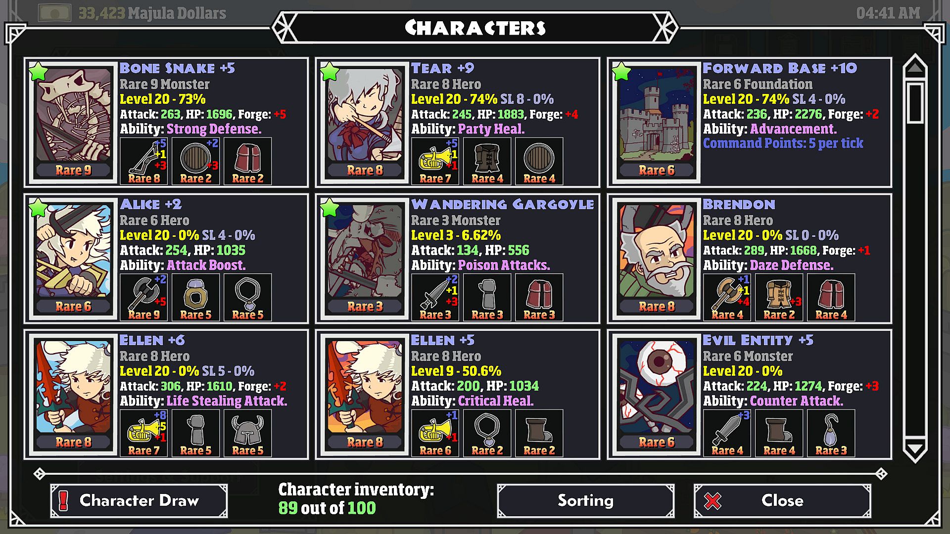 • Dozens of different characters and monsters to choose from. Party building is intense!