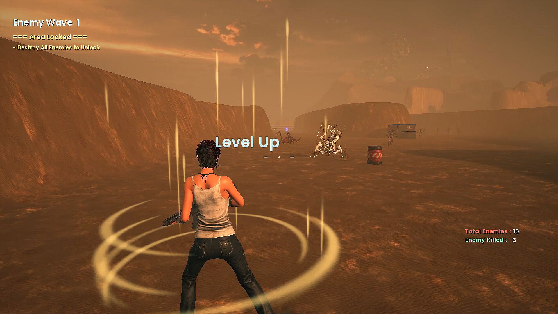Survive a spaceship crash on an unknown planet with Alicia Hudson and her crew, racing to escape before the core explodes. Battle endless enemy waves in locked areas to clear them out completely. Switch combat modes instantly for ranged guns, grenades, or melee strikes, testing your dodge, shoot, reload, and item-pickup skills against bosses. Tackle defense missions by shielding the city and town from monster assaults alongside Front Guard units, keeping them active to protect NPCs. Spend coins earned in combat on weapon upgrades, E-Slot items, and medical supplies, with handgun clips always available. This fast-paced indie action game on PC challenges skilled players who thrive on intense timing and versatile combat.