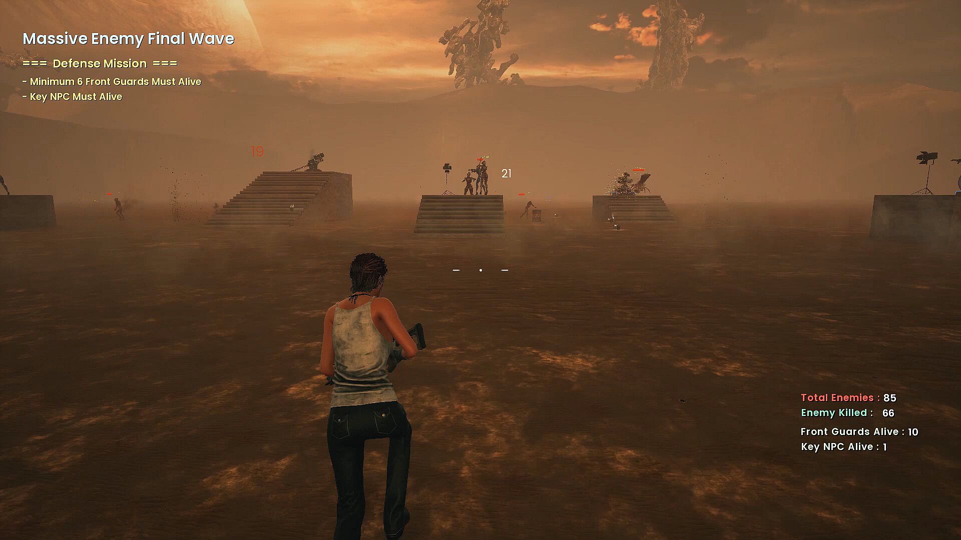 Protect the city (& town) from massive monster attacks, and it's up to you and the autonomous defenders called Front Guard to stop them. Make sure to keep the Front Guards operational and prevent the monsters from harming any NPCs. Can you hold the line and defend the city?"