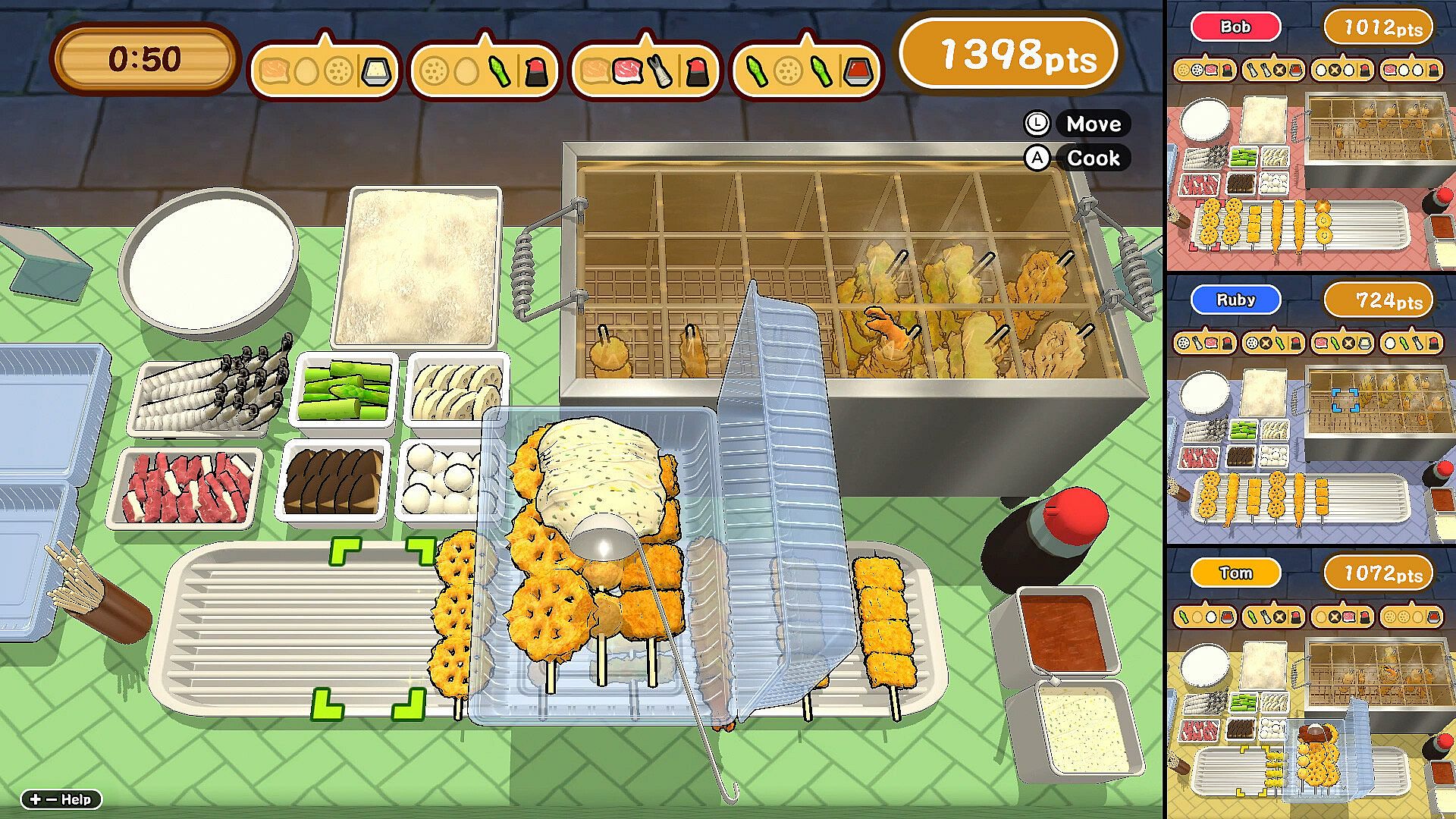 Cook up as many kushikatsu as possible and aim for the top spot on the leaderboards!