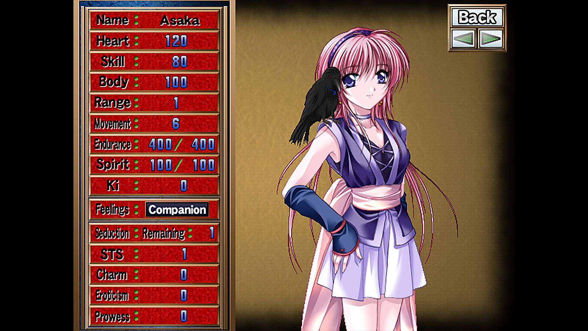 She becomes embarrassed easily regarding matters of sex due to her lack of experience, but she is someone who will give her all for her partner.