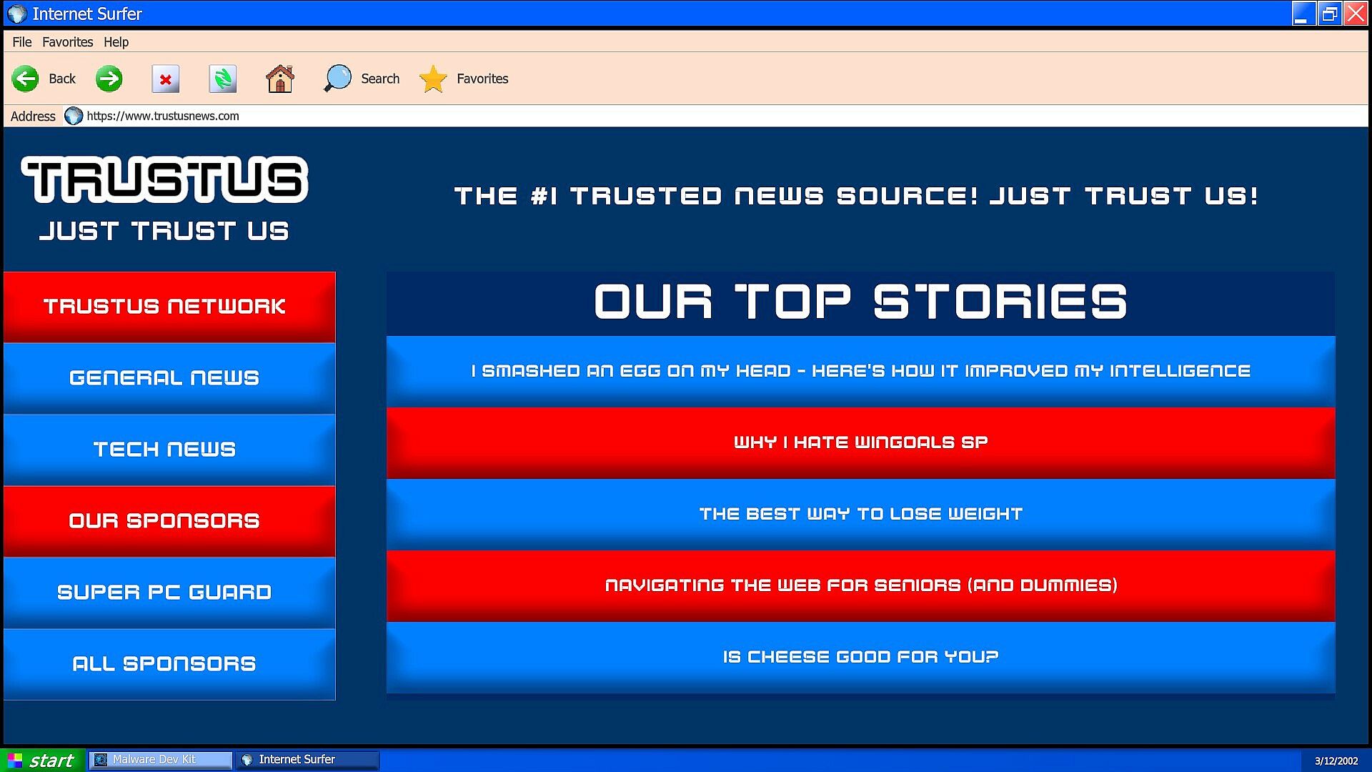 The year is 2002. Upon visiting your local dump scavenging for car parts, you came across an abandoned PC. "Weird", you thought, "It looks pretty modern. Who would throw something like this out?". Upon hooking it up, you realize this computer belonged to a former NSA agent and has tools on it to make and distribute malware. With these programs, you could make money, you could mess with your friends, you could destroy computers... you could destroy ALL computers.