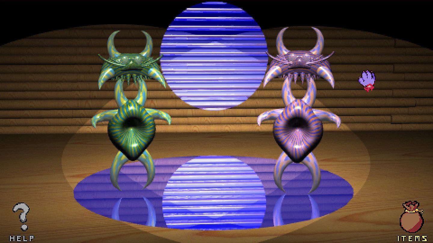 This game is presented in the style of old 1st-person point & click adventure games, with an emphasis on moody atmosphere and surreal environments. Strange denizens pepper the vast halls of this cryptic building.