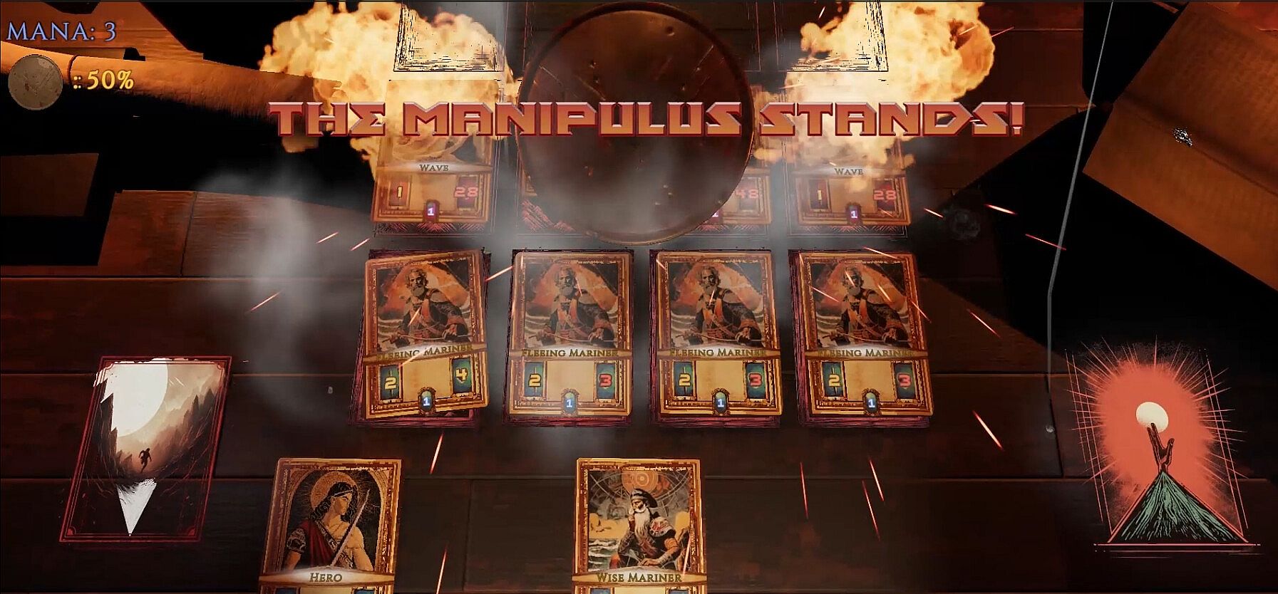 As a Manipuli general, form strategic defensive lines and manoeuvre your followers to activate wild abilities to defeat the oncoming monsters and lead your band to safety. Re-play your cards, re-live your actions, and fight to keep your refugees alive in this dark and captivating adventure.