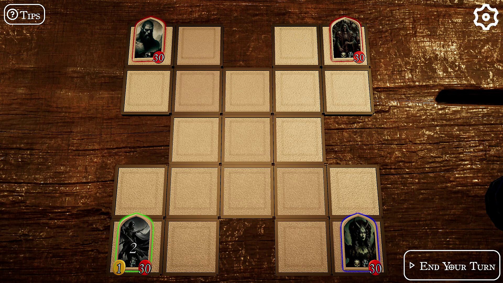 Manticore is a card game that unfolds on a grid-based playing field. Players interact with three distinct card types: Heroes, Minions, and Spells. The overarching objective of the game varies depending on the level rules, for example to either vanquish all adversary Heroes or eliminate their Minions as well to secure victory.