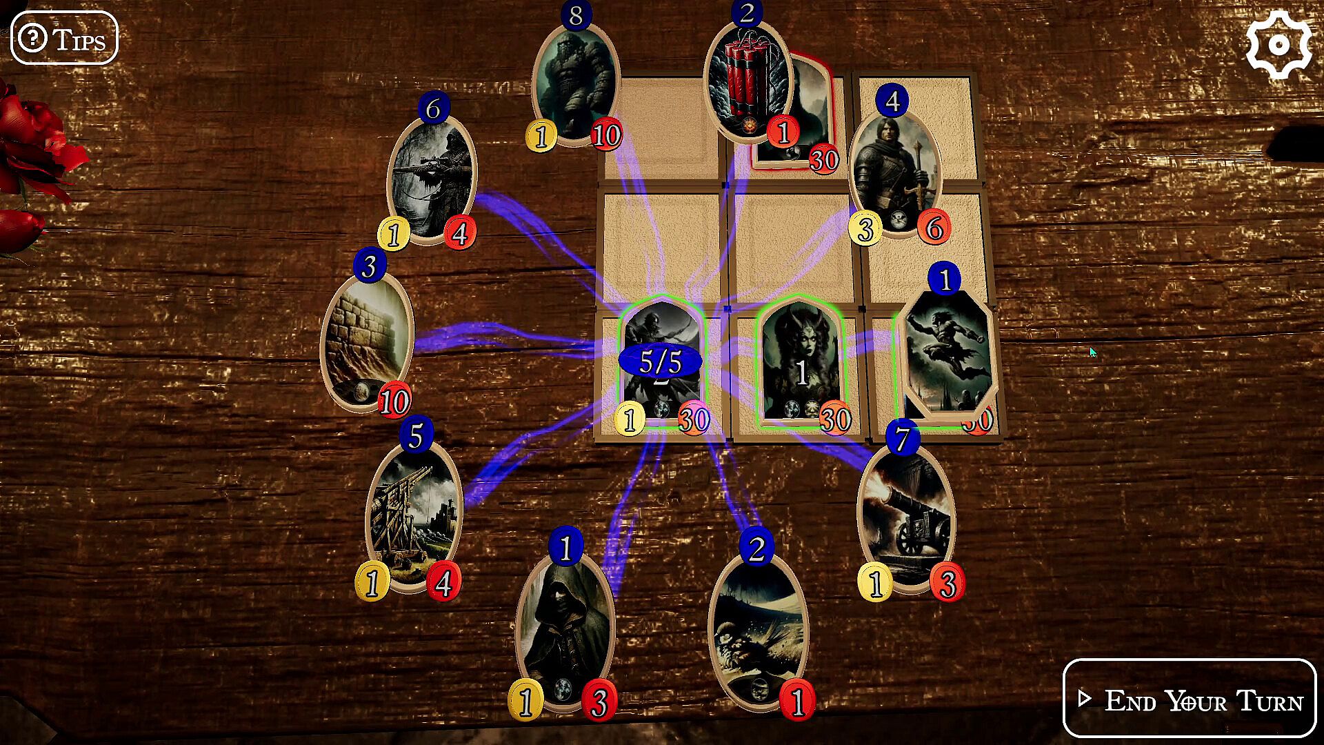 Additionally, positioning oneself next to a deck of cards grants the opportunity to acquire additional cards each turn. However, caution is advised. If the deck is neutral, it is susceptible to being accessed by any spell-collecting adversary as well. Will you eliminate the deck or try to secure the deck for yourself?