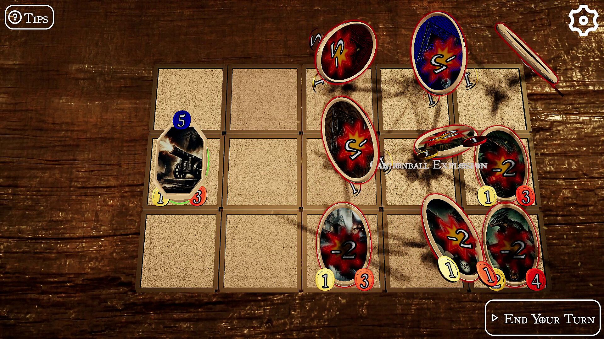 To underscore this system's potency further, consider that the cannonball inflicts the 'Explosion' effect. This same effect could be assigned for a character, triggering upon their death, creating a kamikaze character. For example the Dynamite card uses this type of behavior.