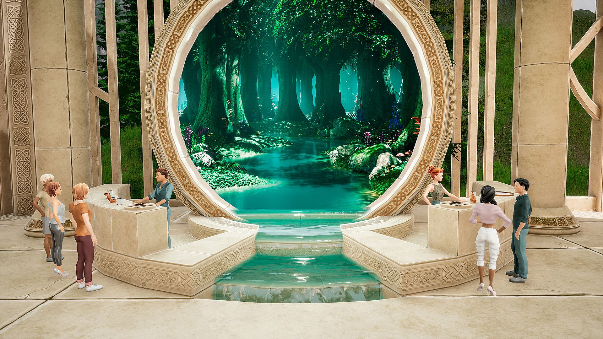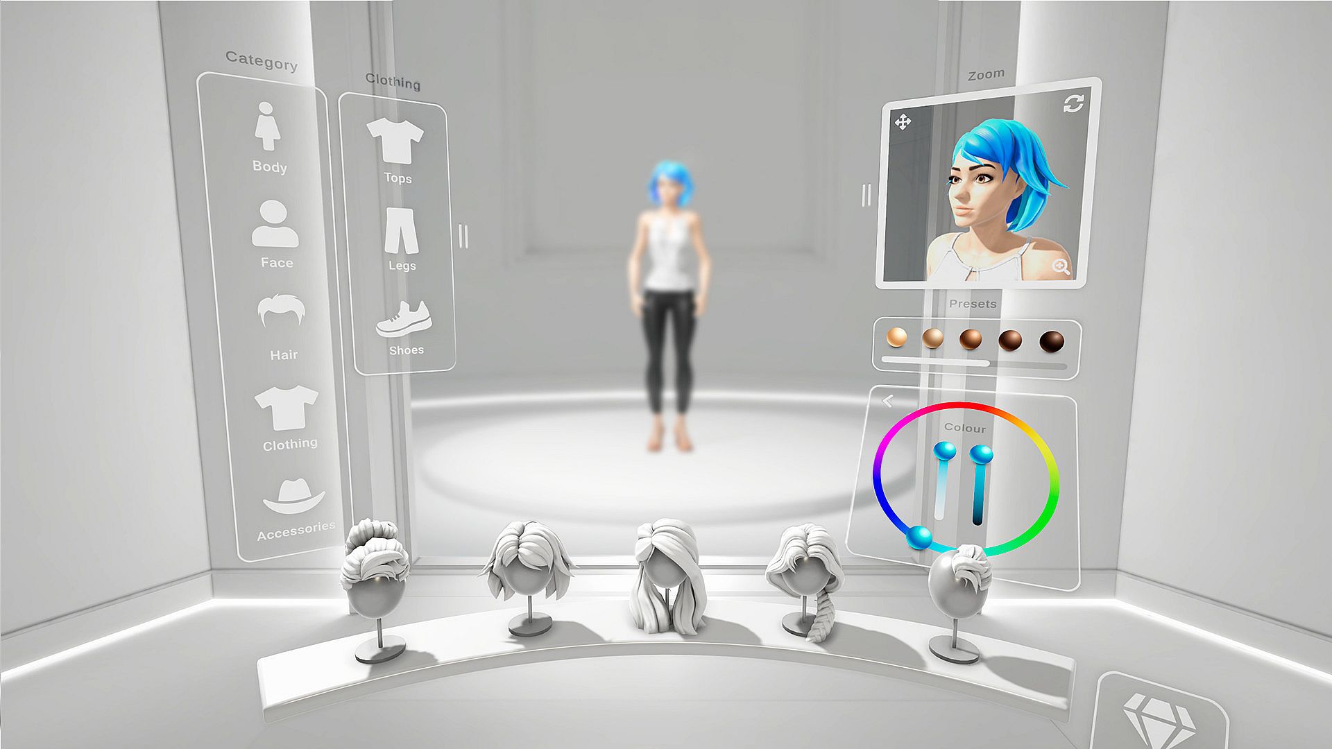 In Many Worlds VR, the core experience revolves around avatar creation and personalization. You start by designing your character in a wardrobe system that offers a wide range of clothes, hair styles, accessories, and color options, all adjustable at any time as you collect new items during your travels. From there, the game opens up to exploration in various open spaces, where building a home on available land becomes a key activity for establishing your presence.