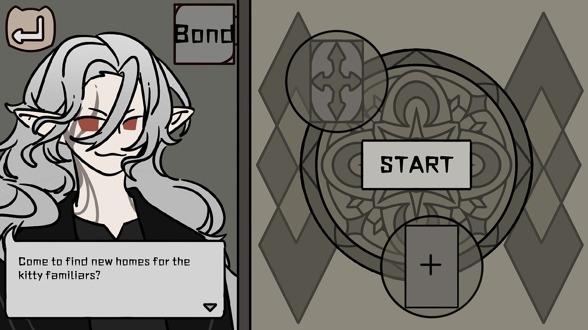 To safely research the genetics of cat familiars, we knew magic was necessary! And witches, naturally, are the beings who have spent the most time alongside cats. To ensure every cat familiar's health and safety, we set the game in a fantasy world, hoping to present a unique relationship between witches and cats.