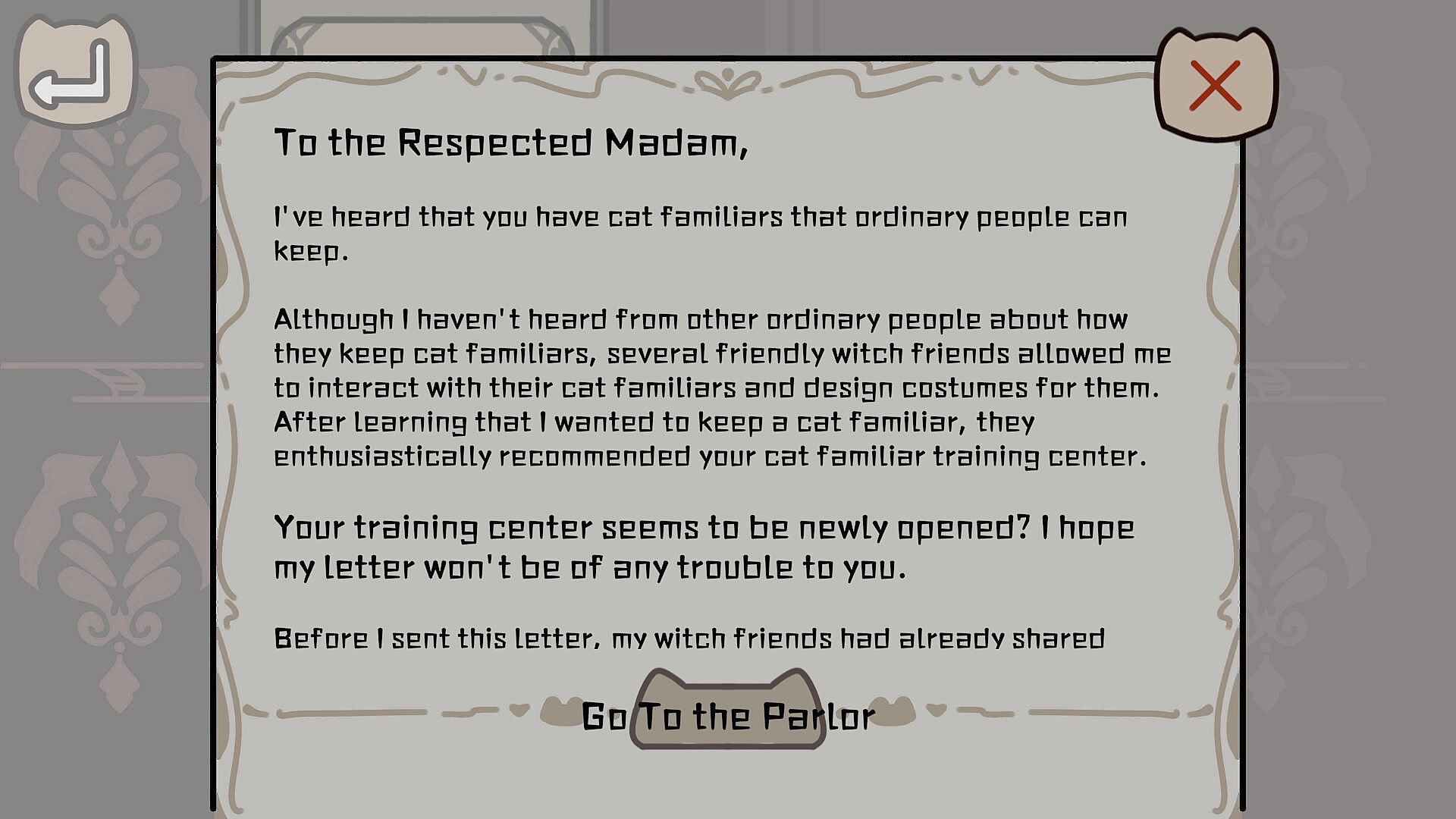 Most of the created cat familiars won't stay at the center permanently. They will either be sent to new homes through bonding, or you will receive commissions from dragons, elves, unknown lifeforms, and other witches. These clients have specific requests, hoping you'll create a cat familiar that meets their requirements.