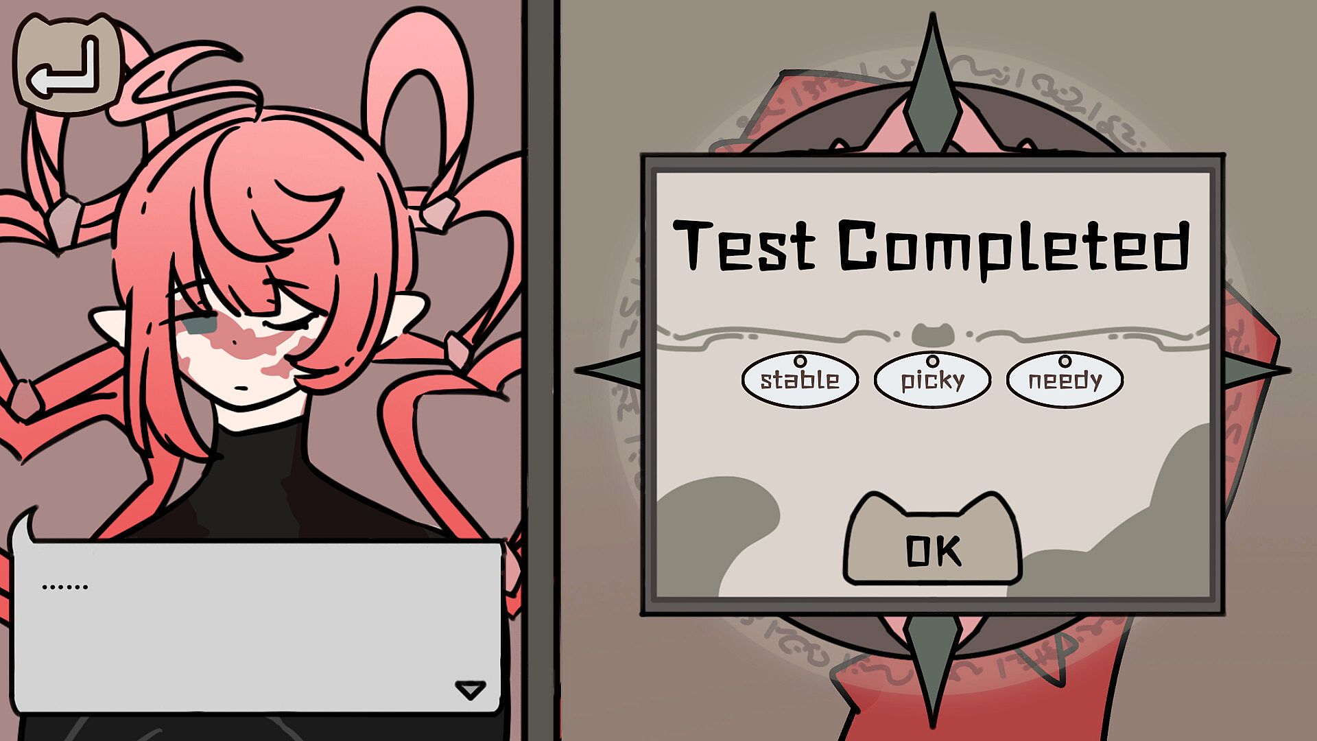 In bonding and commissions, you might encounter requests from clients who want their cats to have specific personalities. This is where the personality testing comes in! A quiet witch friend will accompany you throughout the process.