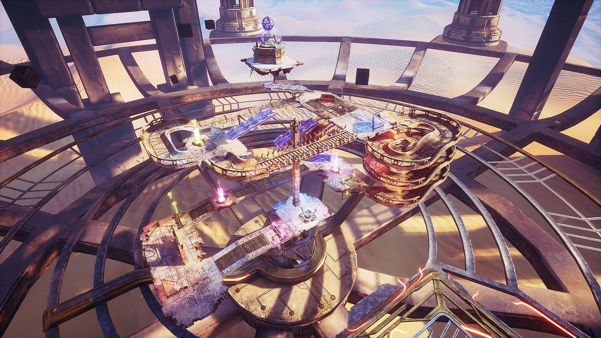 Marble Land is a physics-based puzzle game that was designed primarily for VR. The purpose of the game is to guide a rolling marble on the correct path to its target destination by changing the configuration of the elements in the level. The game contains 45 levels of increasing difficulty, split across three different environments: the desert, the cave and the mountain.