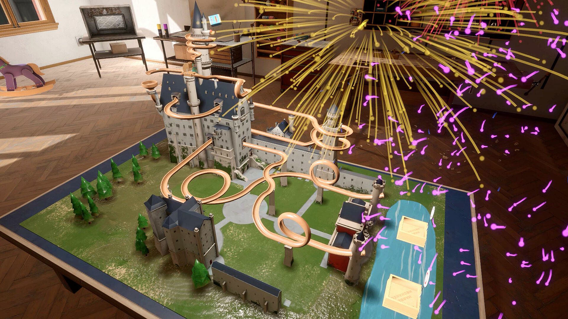 Marble Mechanics is an immersive VR sandbox, simulation, and puzzle experience where players design and craft intricate marble runs. With intuitive controls and realistic physics, it empowers imagination and creativity. Whether you're a builder who thrives on innovation or a spectator who enjoys the calming flow of marbles gliding through complex tracks, the game's soothing soundscapes and tranquil environment provide a engaging yet relaxing escape.