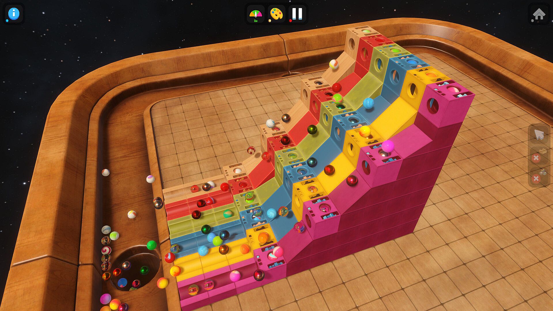 Paths, ramps, holes, slides, and mechanical blocks — discover the endless possibilities and create your own marble playground!
