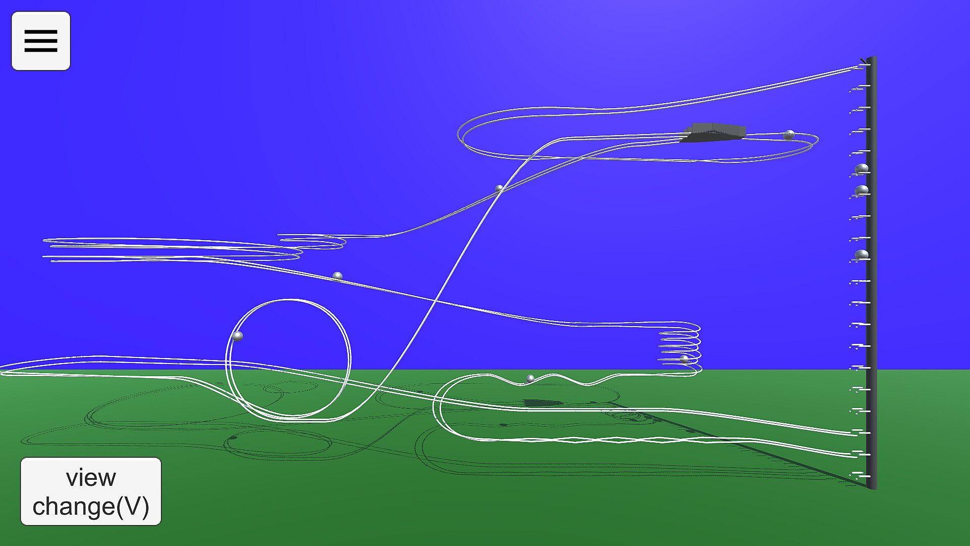 The viewpoint can be switched using the buttons, and the marbles to be gazed at can be changed. You can change the camera direction by dragging the screen with the mouse.
