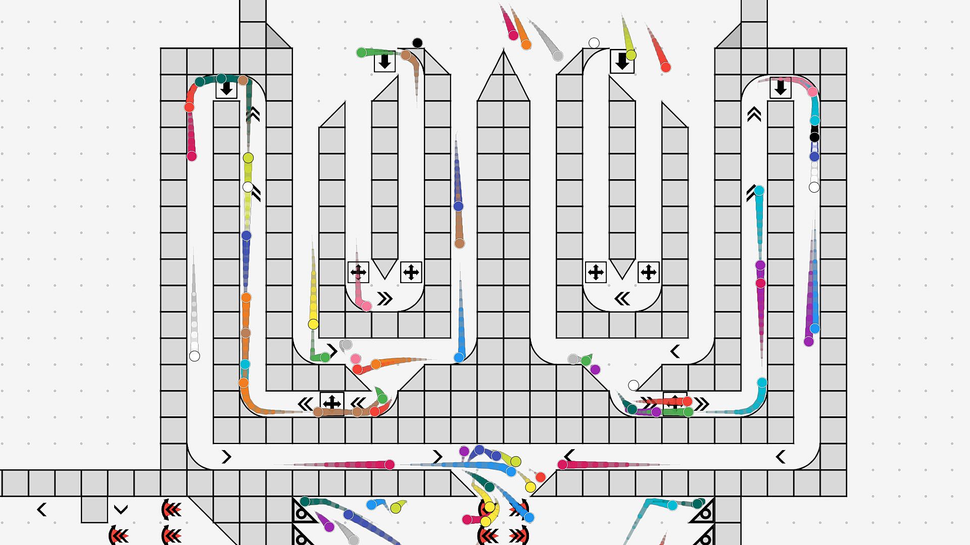 Design freely on an unlimited canvas, hit play, and watch marbles roll, bounce, explode, teleport, and react to the systems you’ve built.