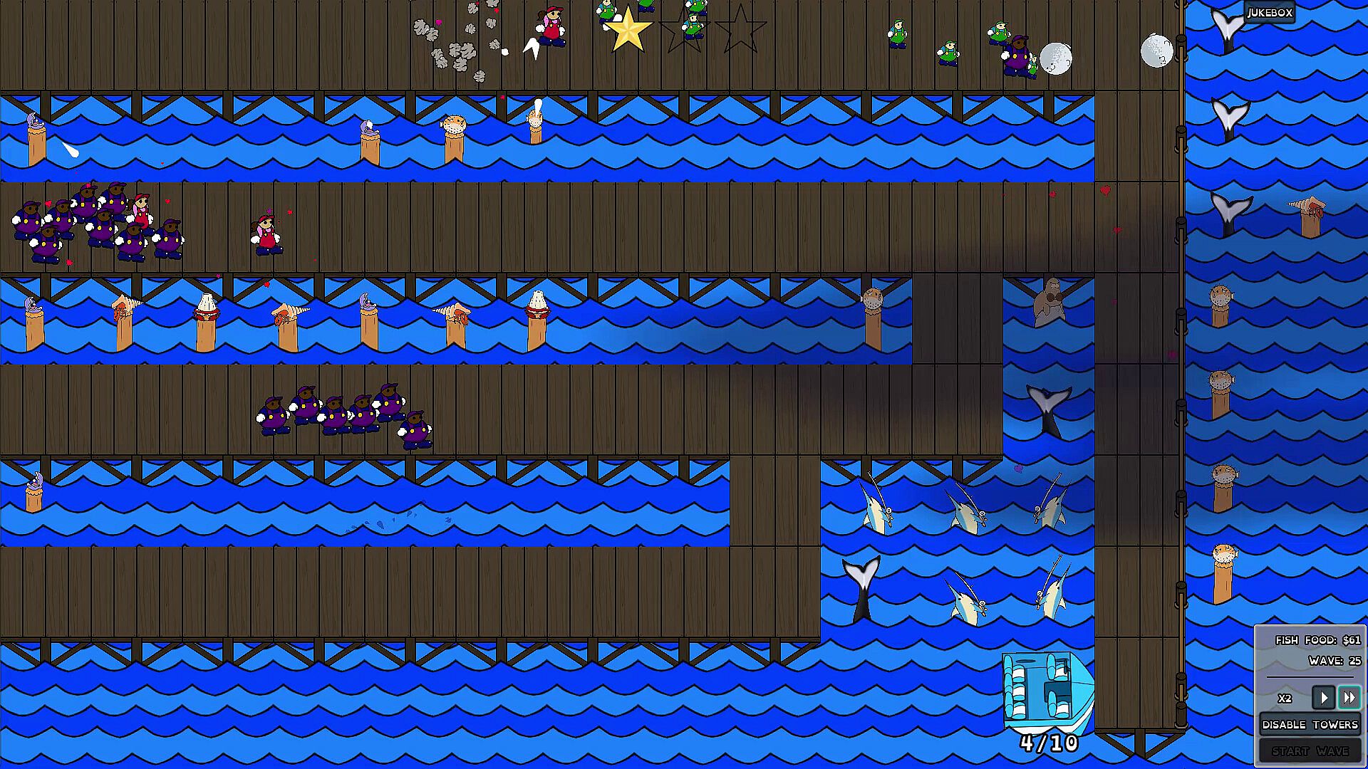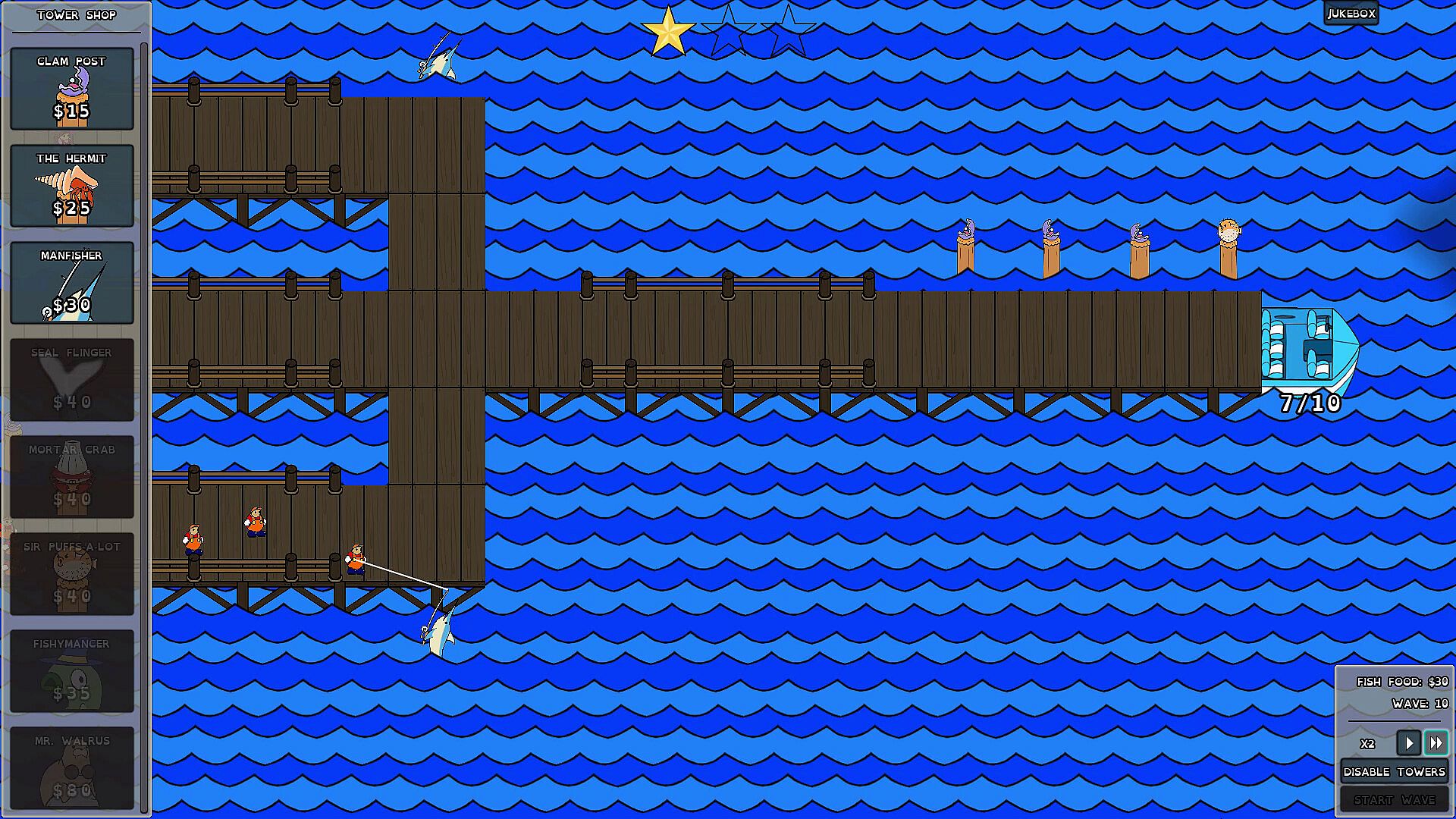 Defend the sea from the menace of these sailors, who wish for nothing more than to embark on another fishing trip. Unite the denizens of the sea to stop the coming menace before they can reach their vessel.
