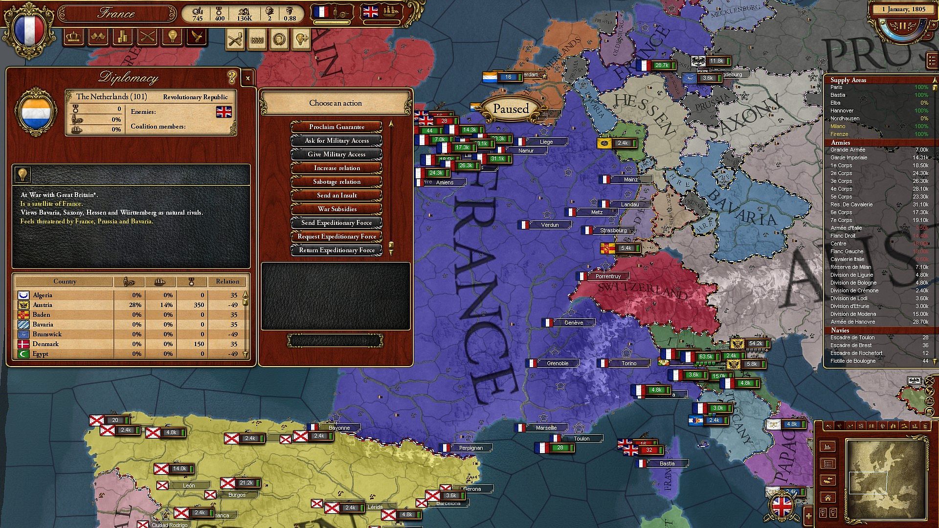 The war-game March of the Eagles focuses on the dramatic conflicts of Europe during 1805 to 1820. Explore one of the defining periods in European history with this experience crafted by the masters of Grand Strategy, Paradox Development Studio. The makers of Hearts of Iron and Europa Universalis now bring The Napoleonic War to life in this war-focused strategy game.