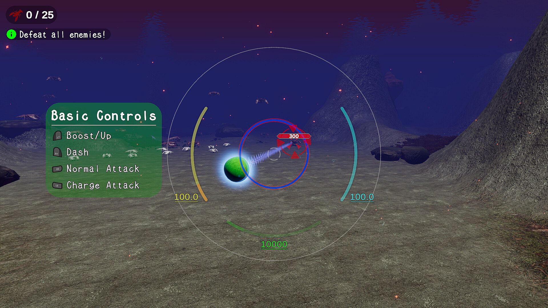 A 3D action game where marimo algae fight for survival against invading alien species in a lake that has become part of the sea!